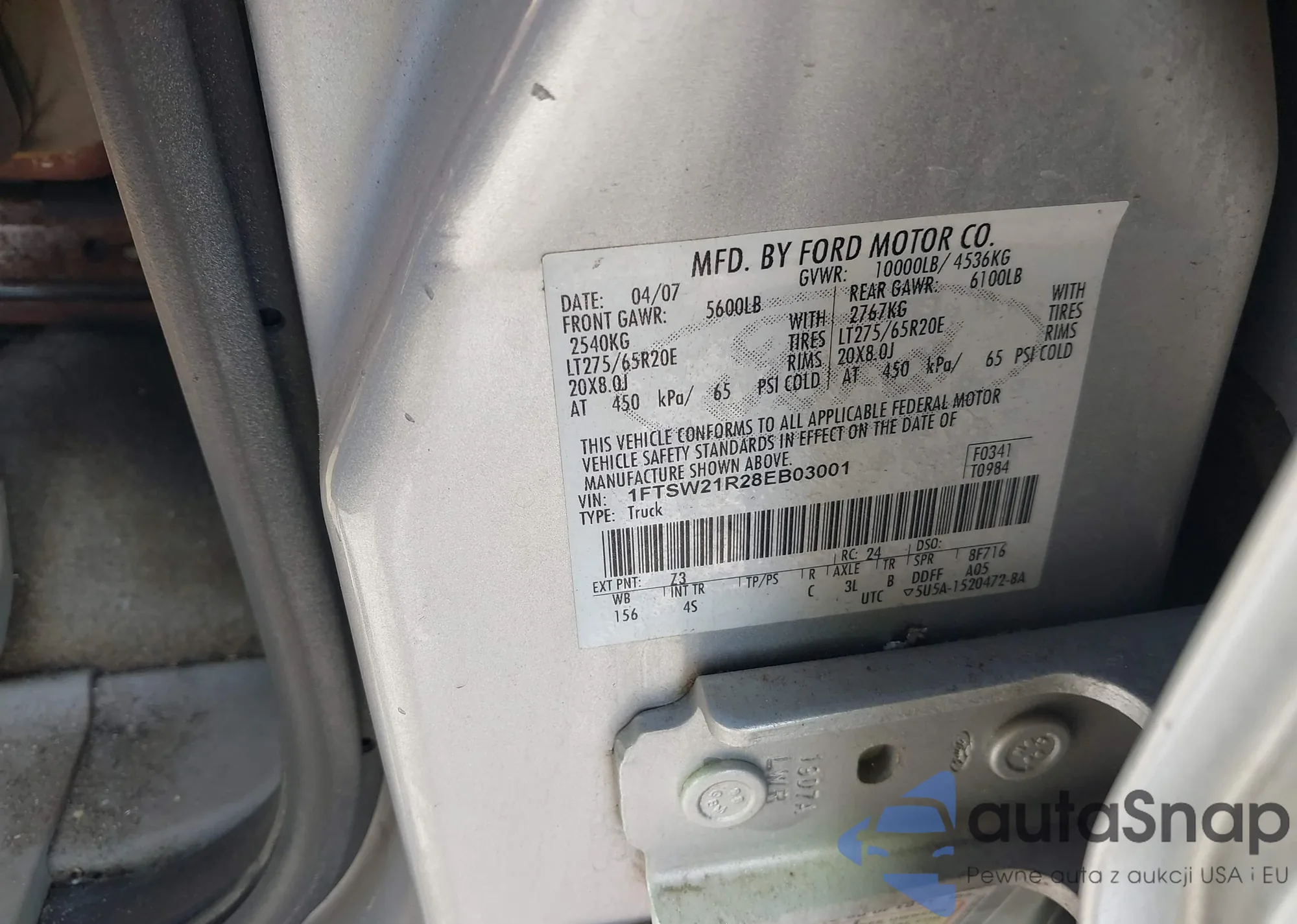 LOT: 42155874 VIN: 1FTSW21R28EB03001