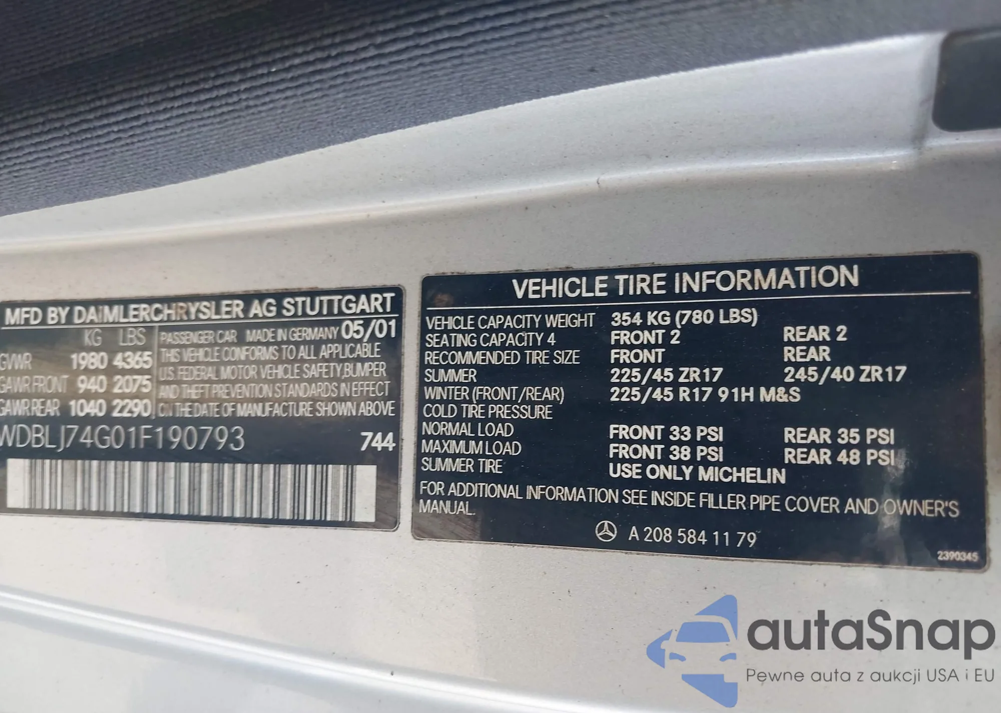 • VIN WDBLJ74G01F190793