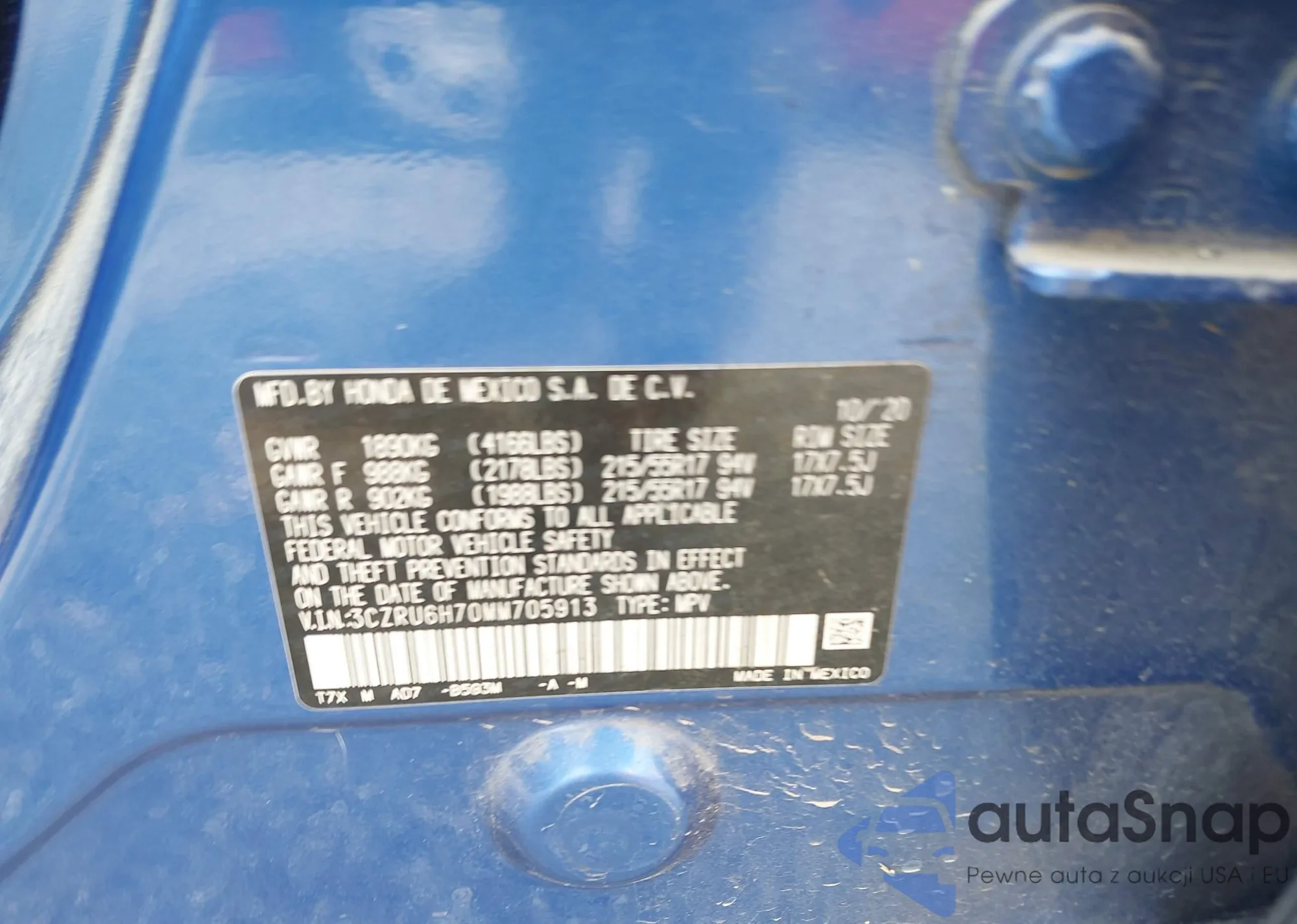 • VIN 3CZRU6H70MM705913