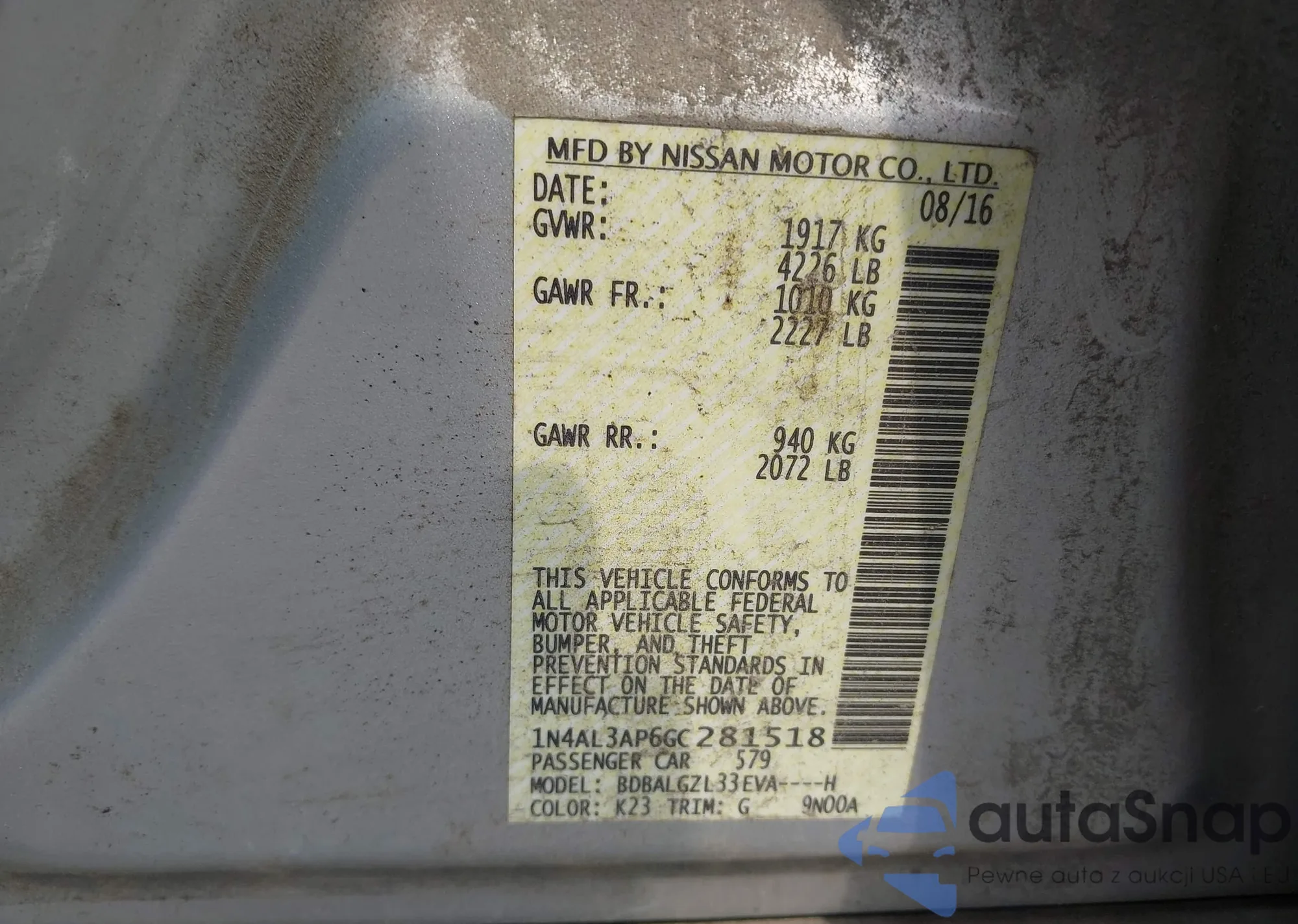 LOT: 42934968 VIN: 1N4AL3AP6GC281518