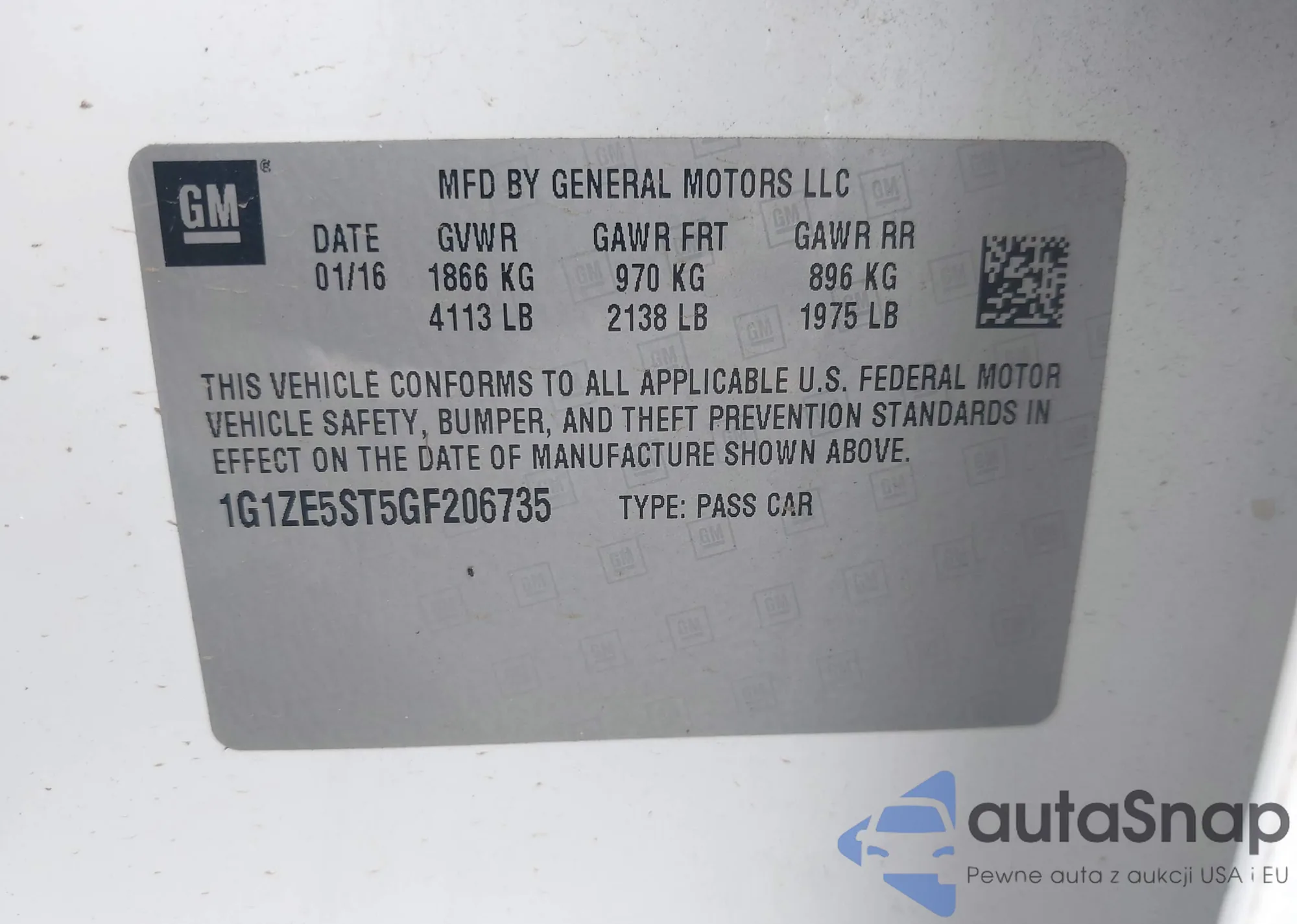 LOT: 42947763 VIN: 1G1ZE5ST5GF206735