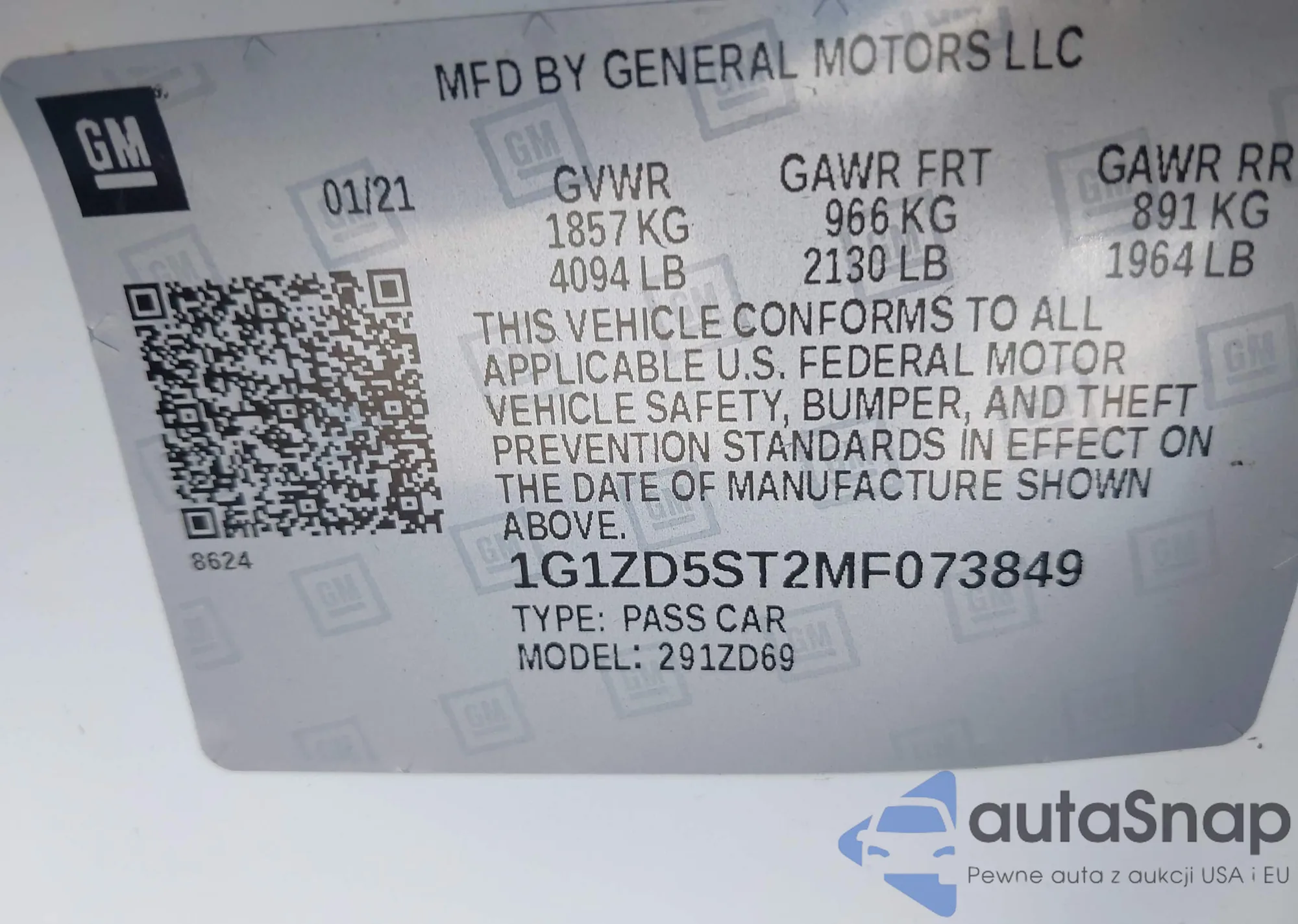 • VIN 1G1ZD5ST2MF073849