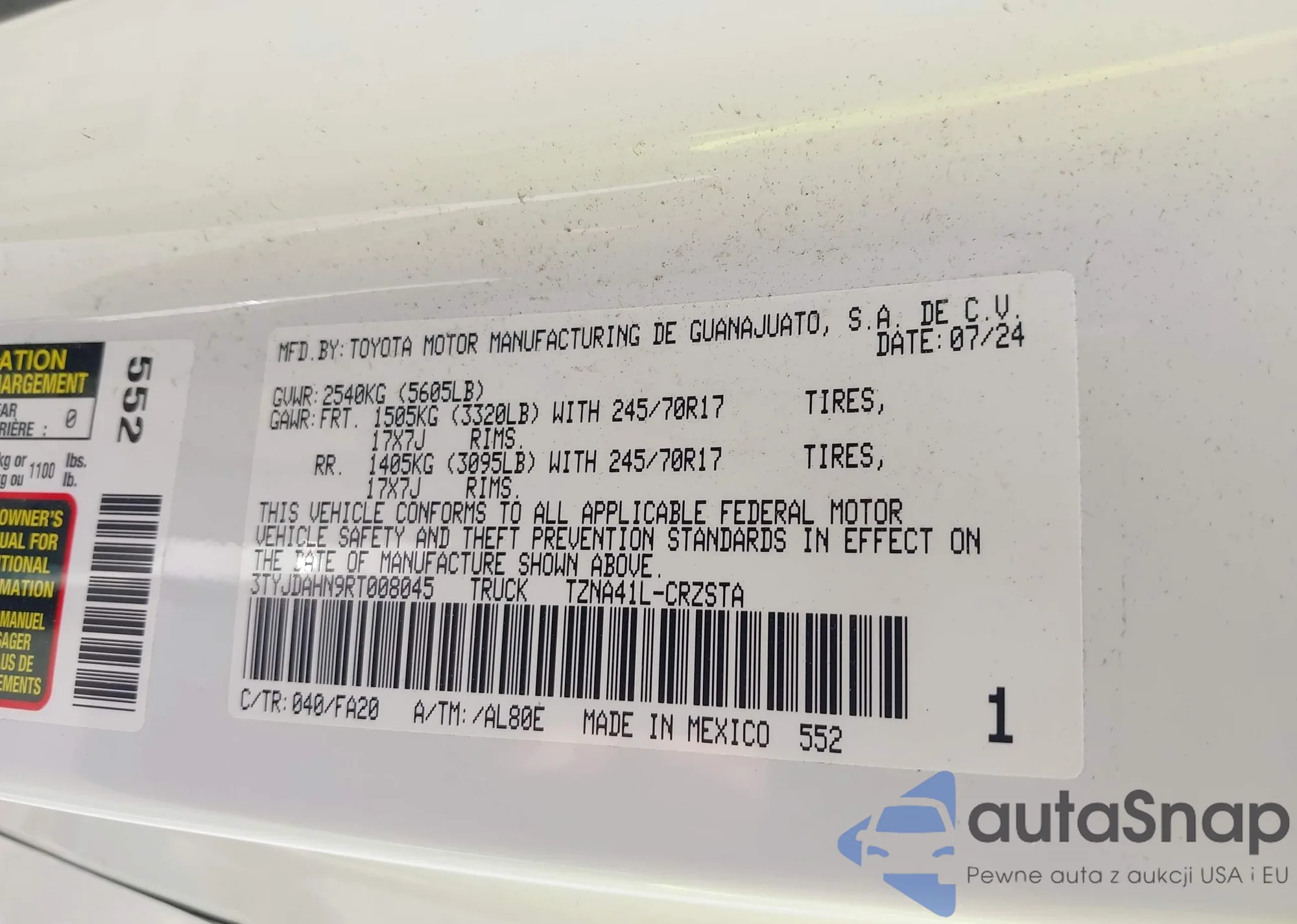LOT: 42933058 VIN: 5TFAW5F17GX572846