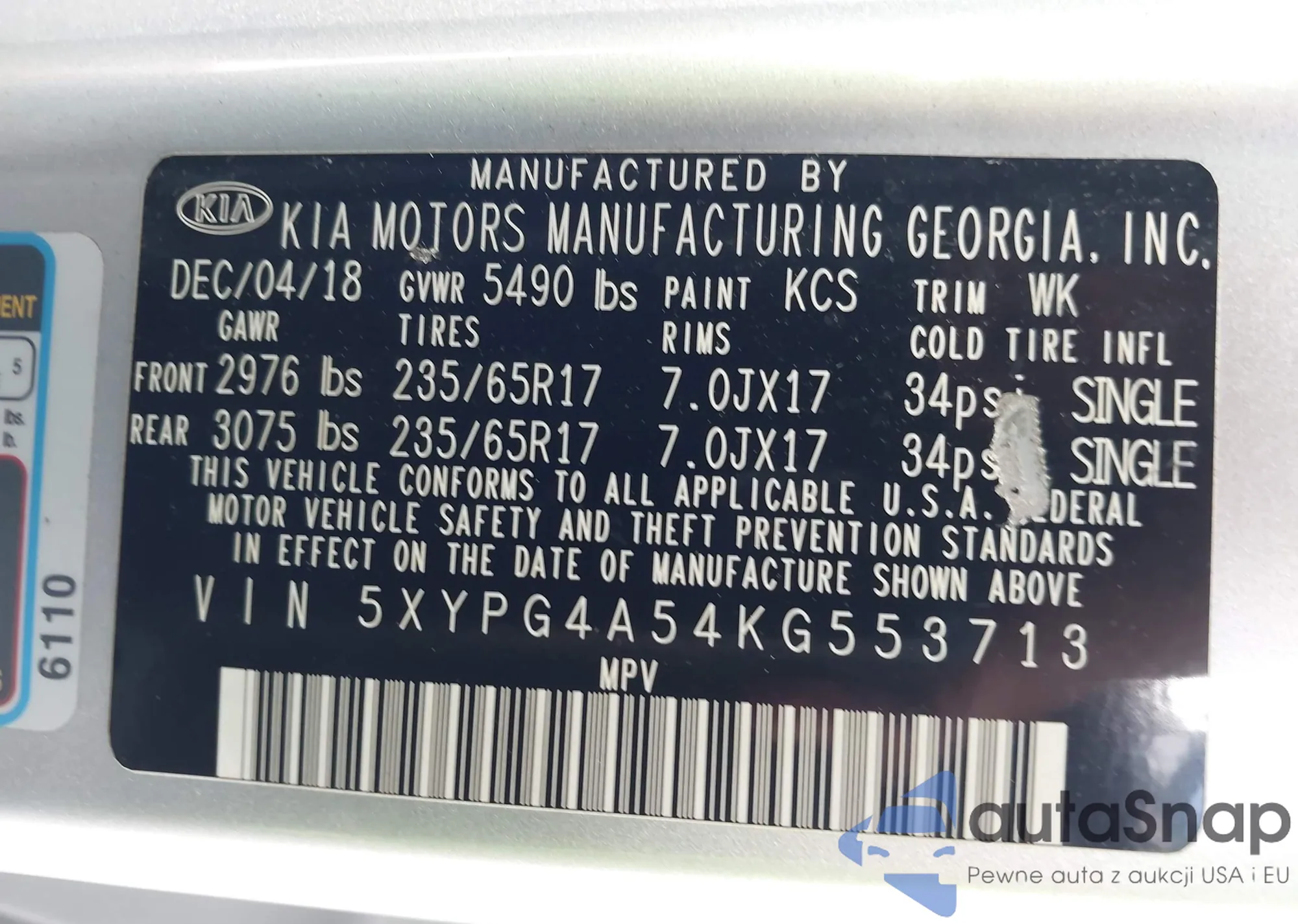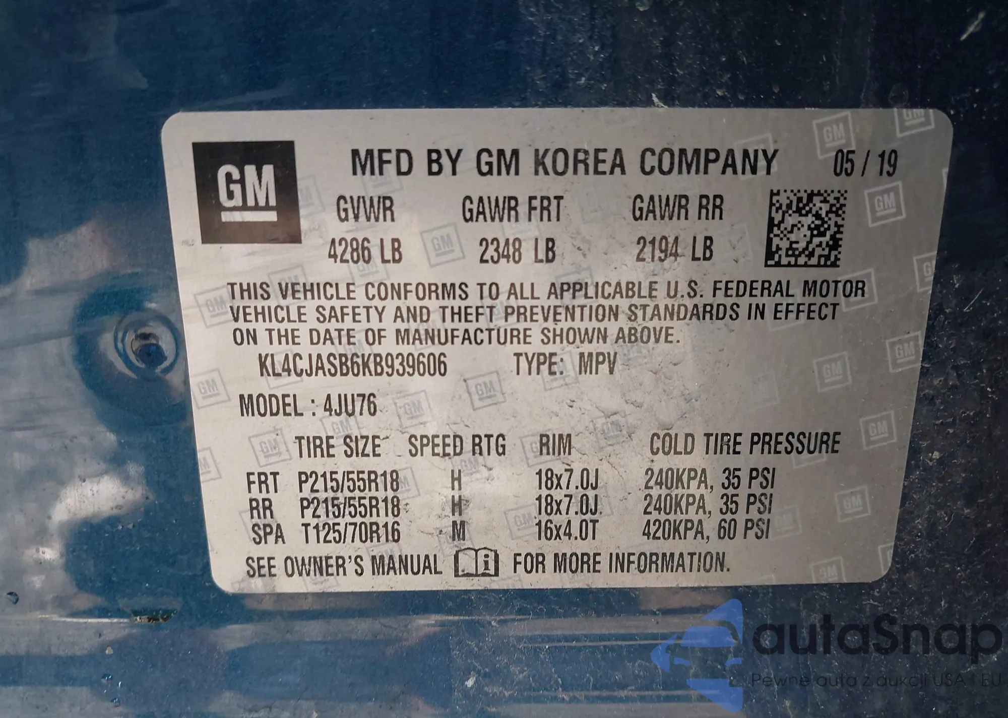• VIN KL4CJASB6KB939606