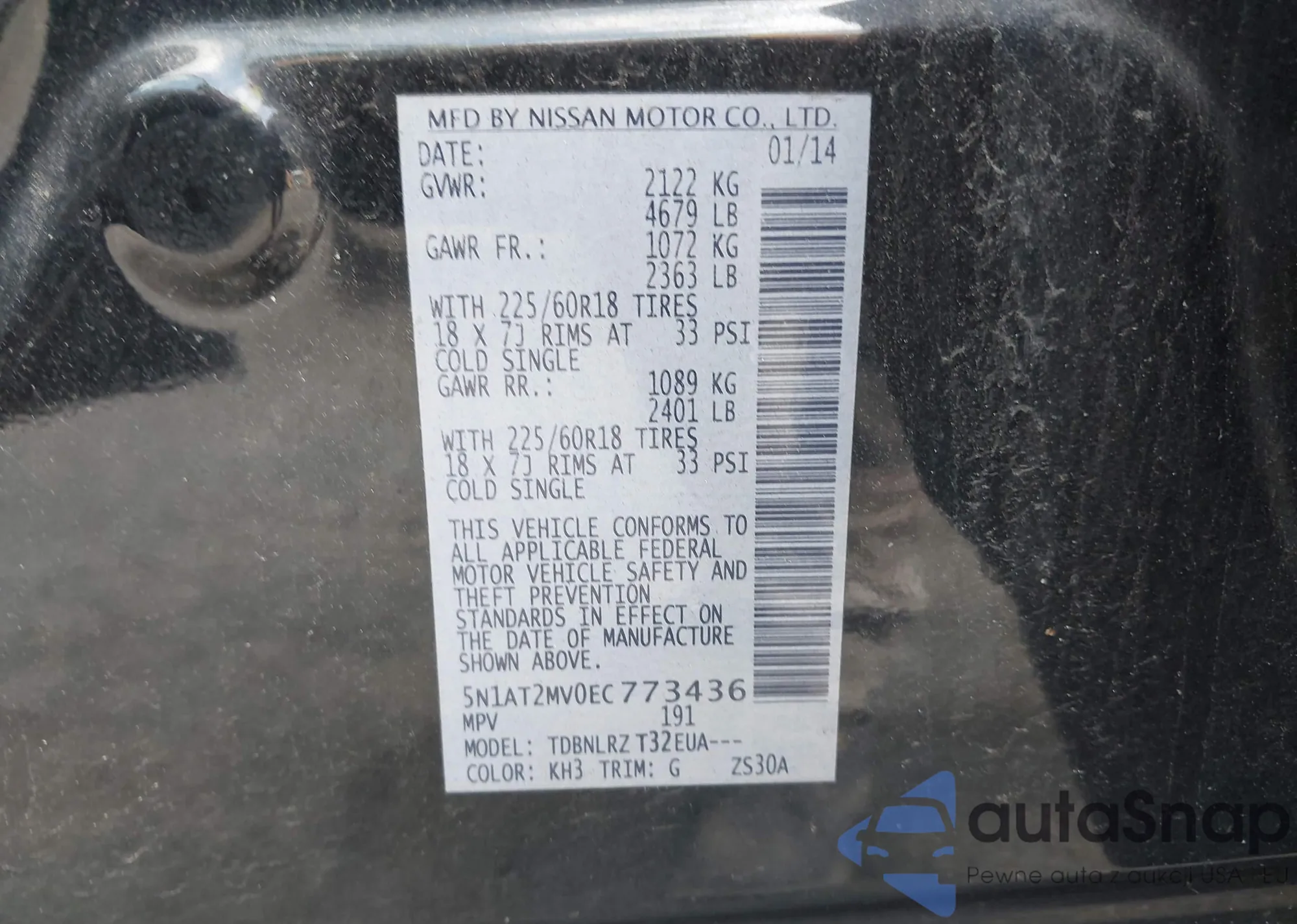 • VIN 5N1AT2MV0EC773436