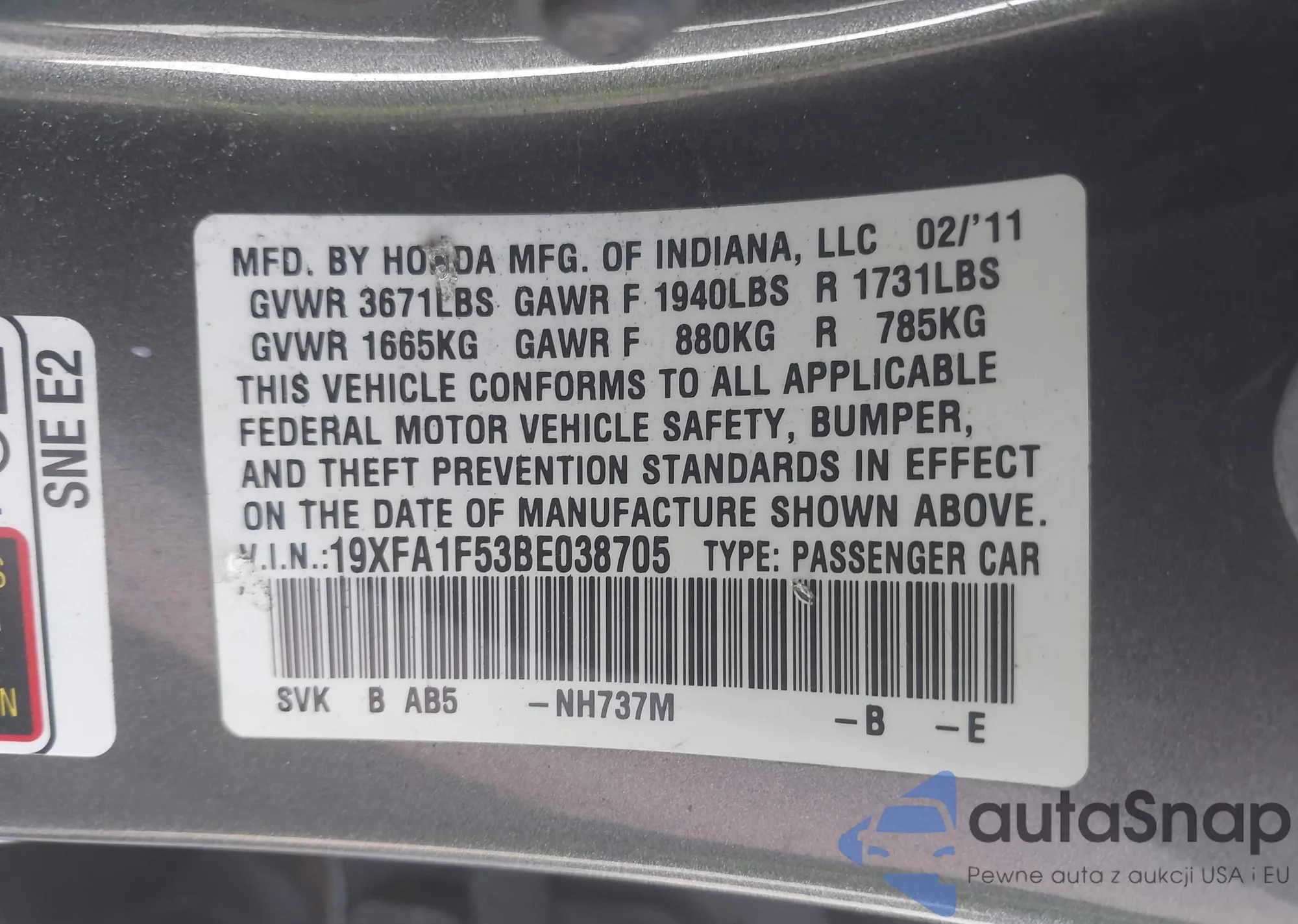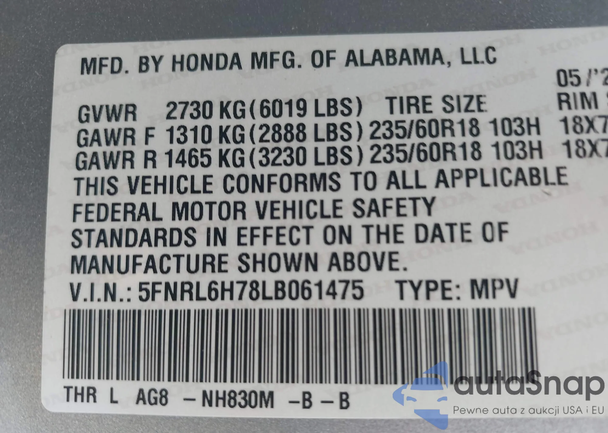 • VIN 5FNRL6H78LB061475