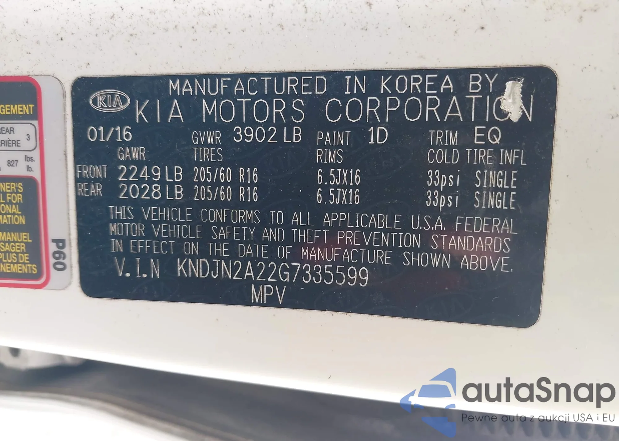 LOT: 43085337 VIN: KNDJN2A22G7335599