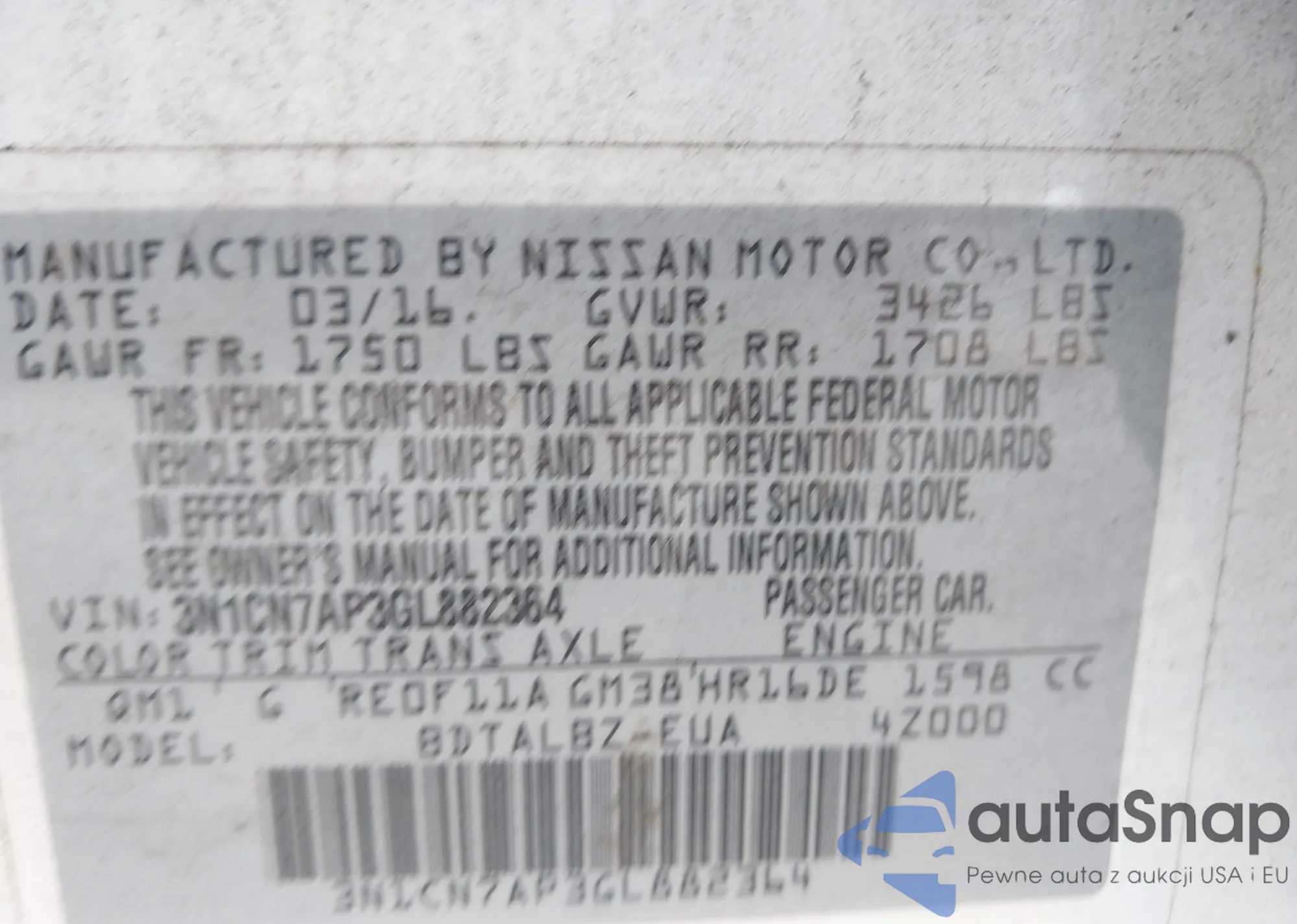 • VIN 3N1CN7AP3GL882364