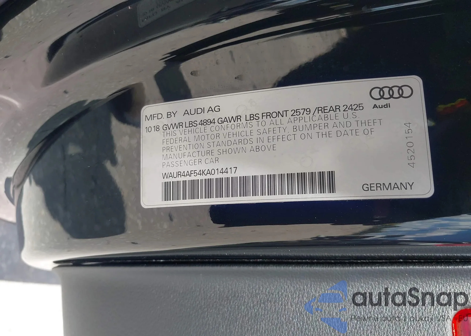 LOT: 42855210 VIN: WAUFFAFL8FN002832