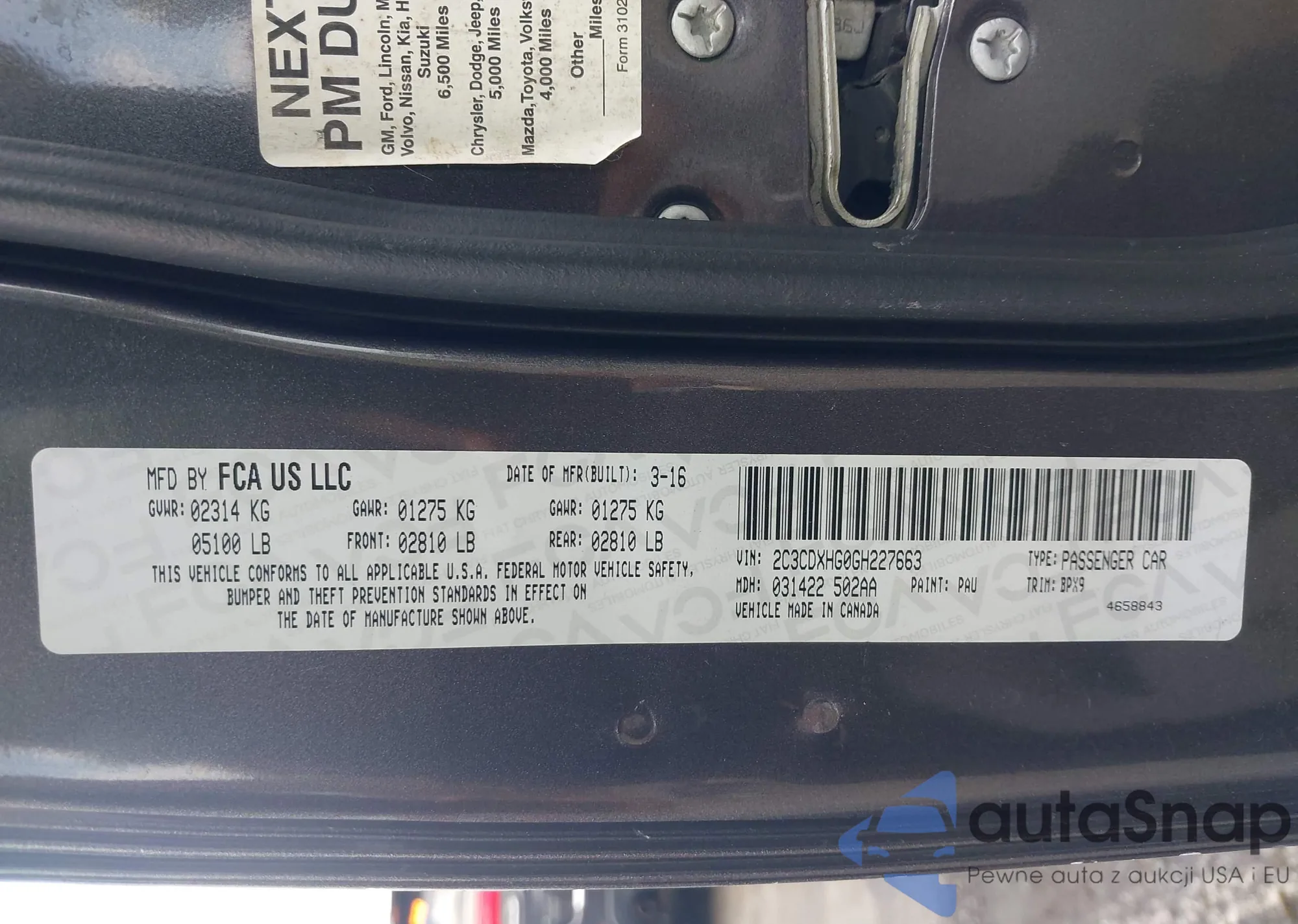 • VIN 2C3CDXHG0GH227663
