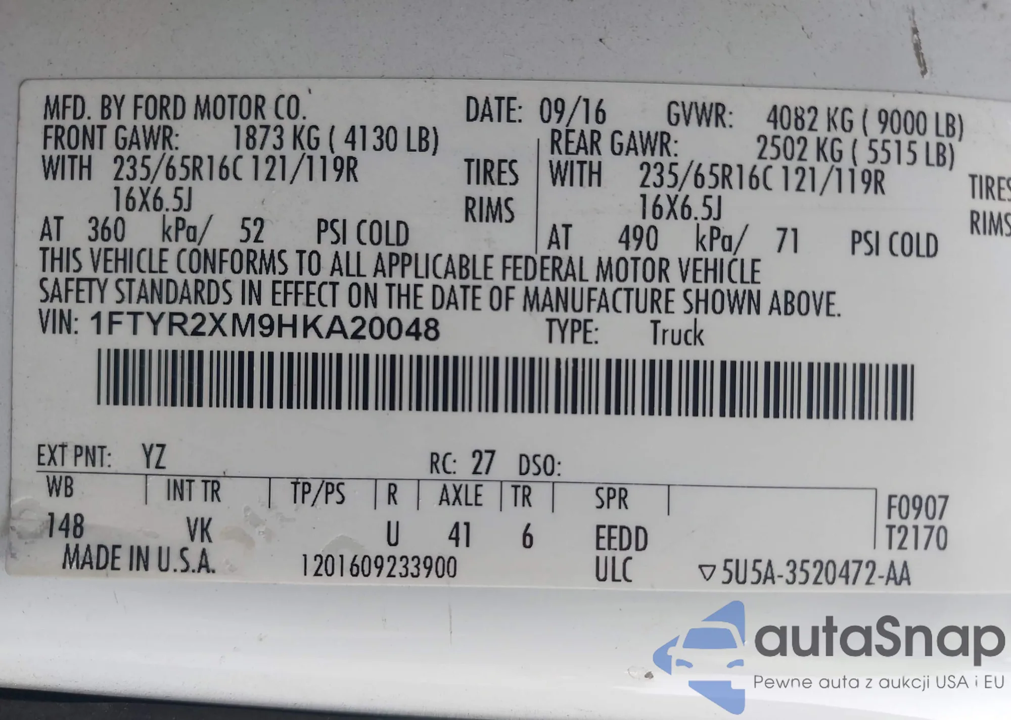 • VIN 1FTYR2XM9HKA20048