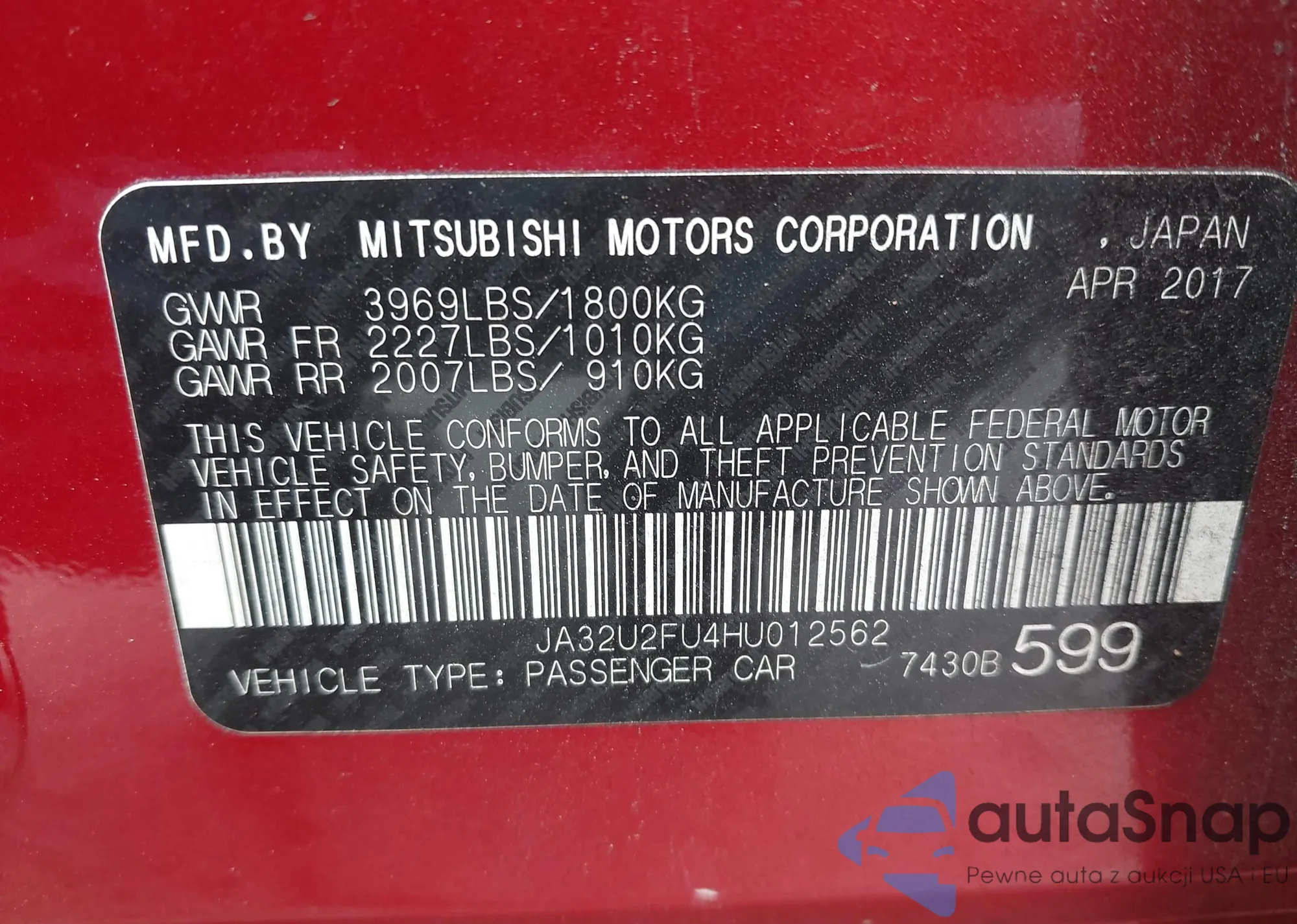 • VIN JA32U2FU4HU012562