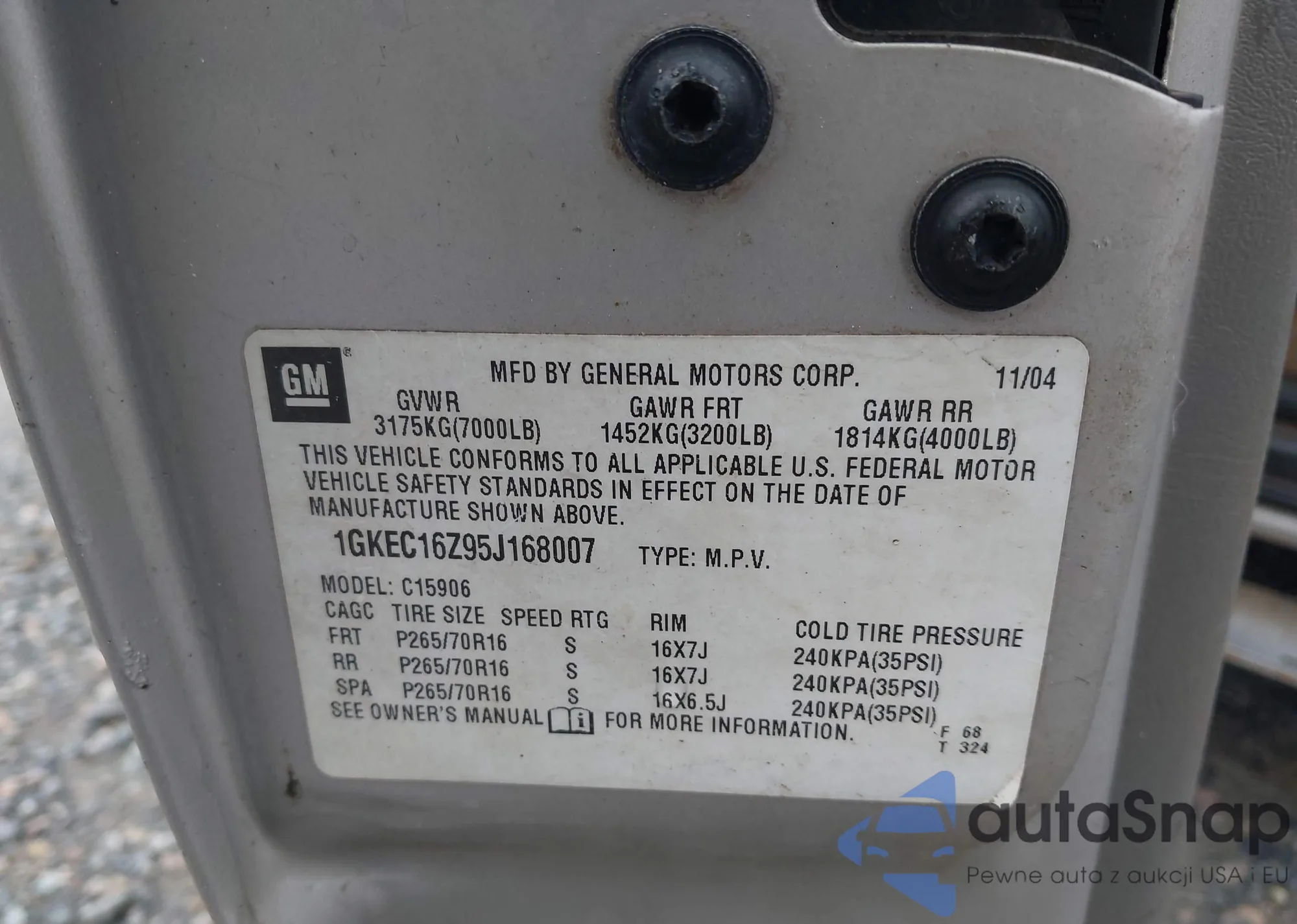 LOT: 42936380 VIN: 1GKEC16Z95J168007