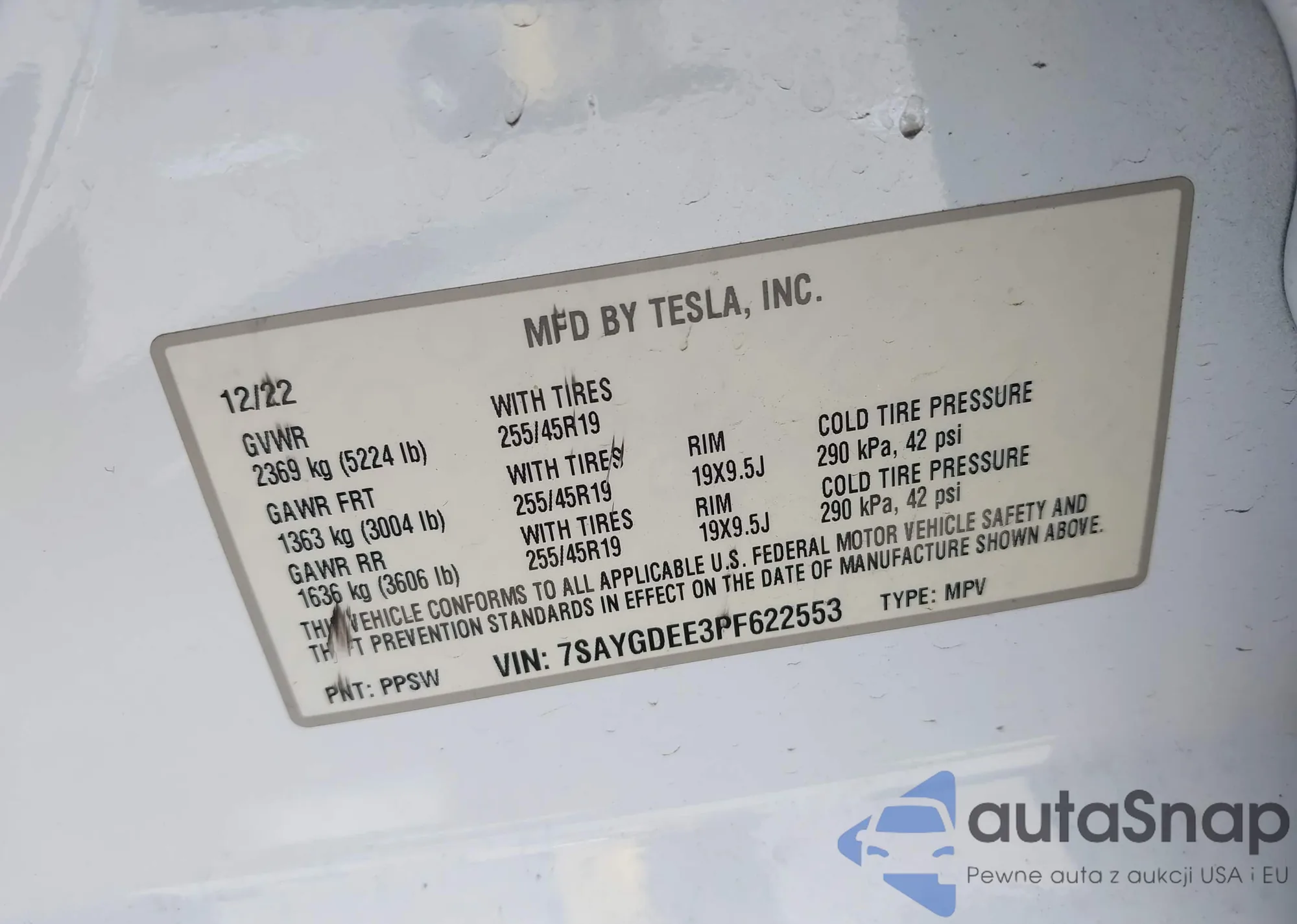 • VIN 7SAYGDEE3PF622553