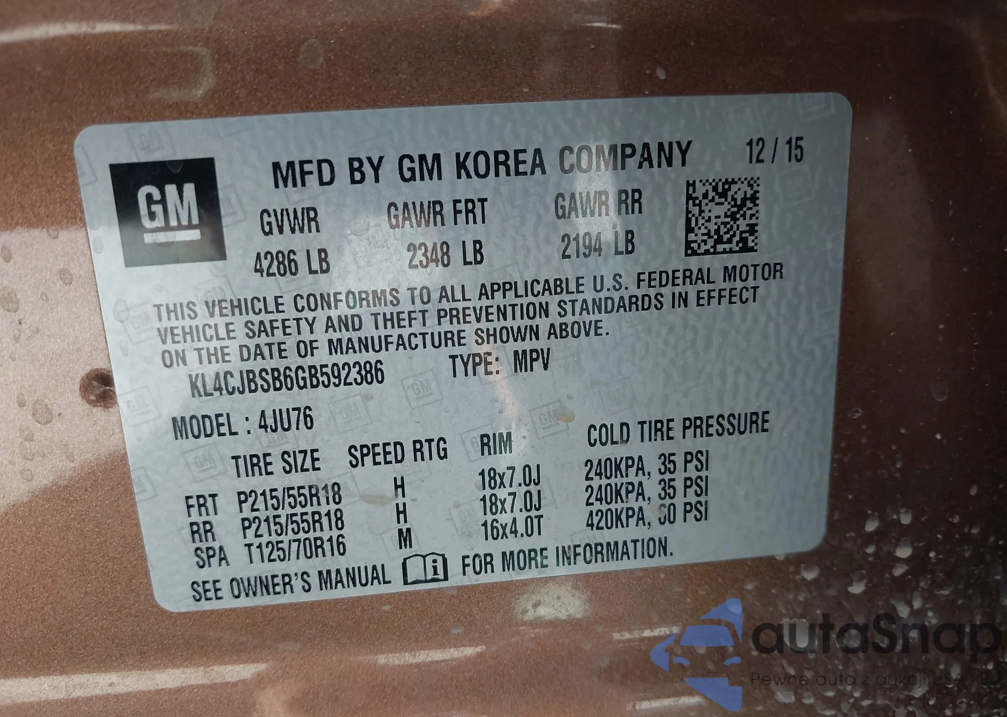 • VIN KNAGR4A66B5114232