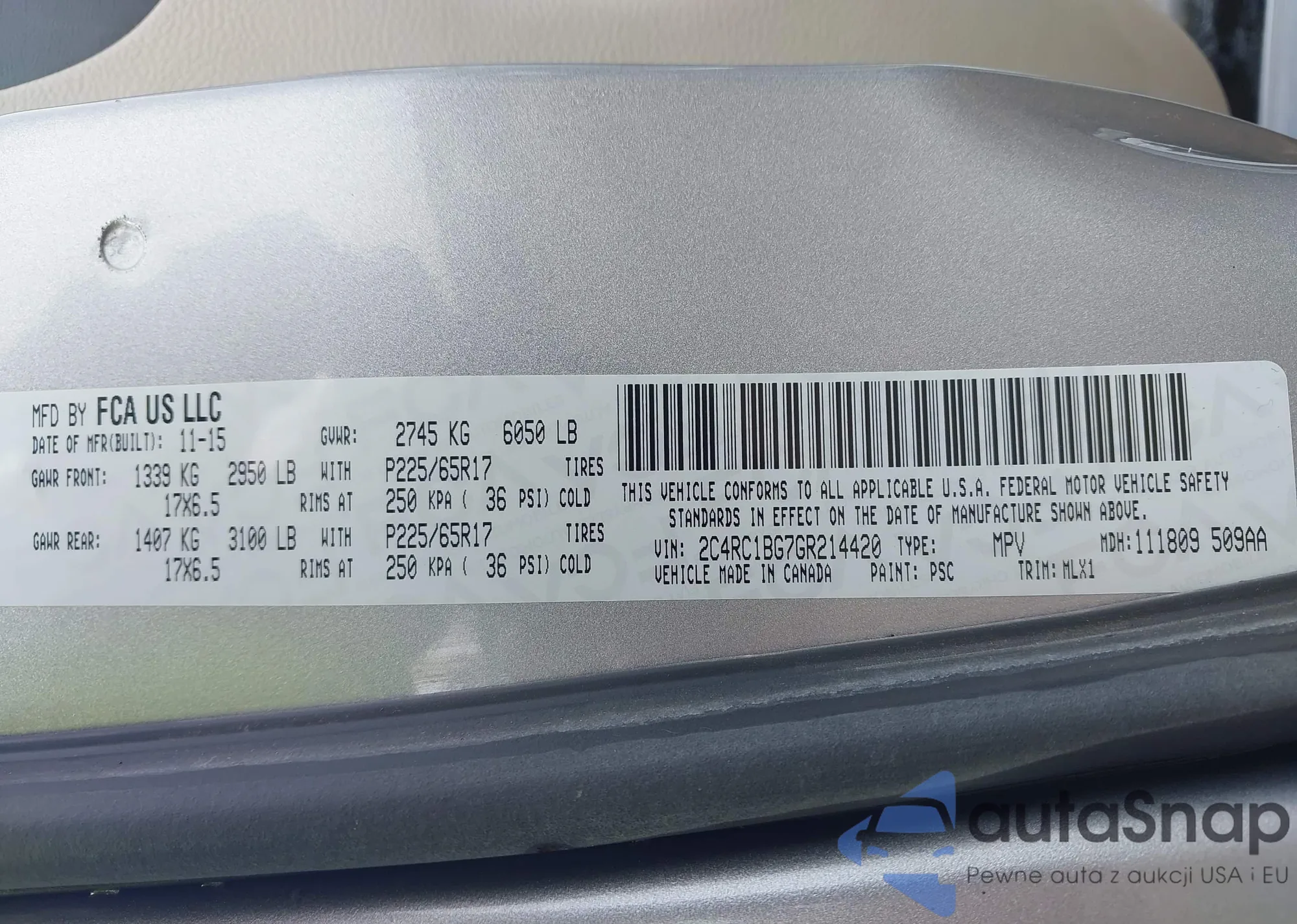 • VIN 2C4RC1BG7GR214420