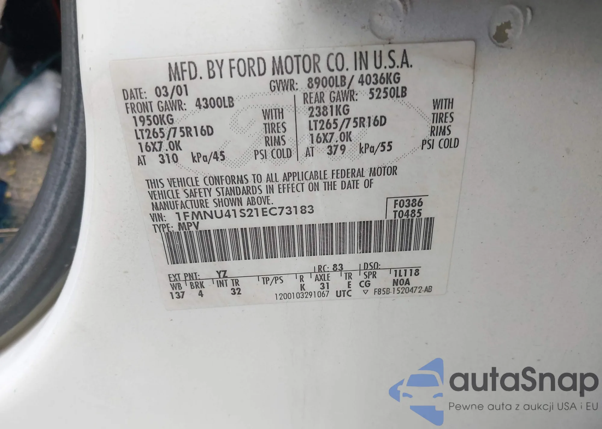 LOT: 43103938 VIN: WVWSP61J03W583539