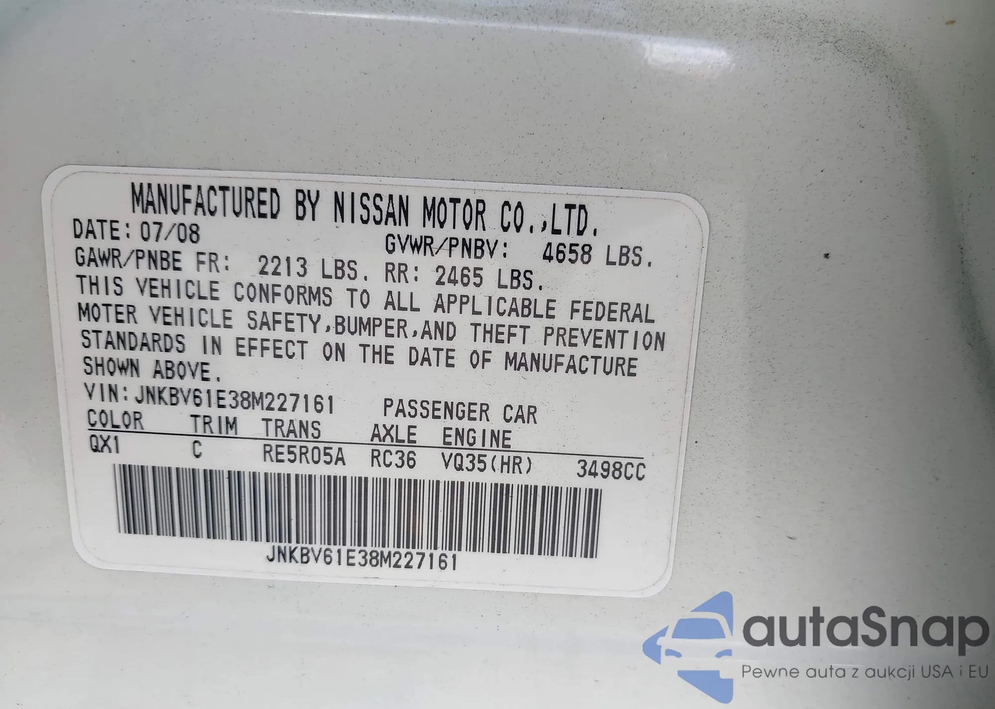LOT: 43102914 VIN: JNKBV61E38M227161