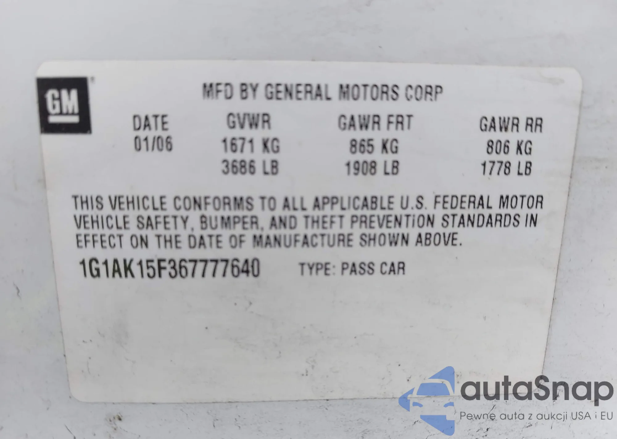 • VIN 1G1AK15F367777640