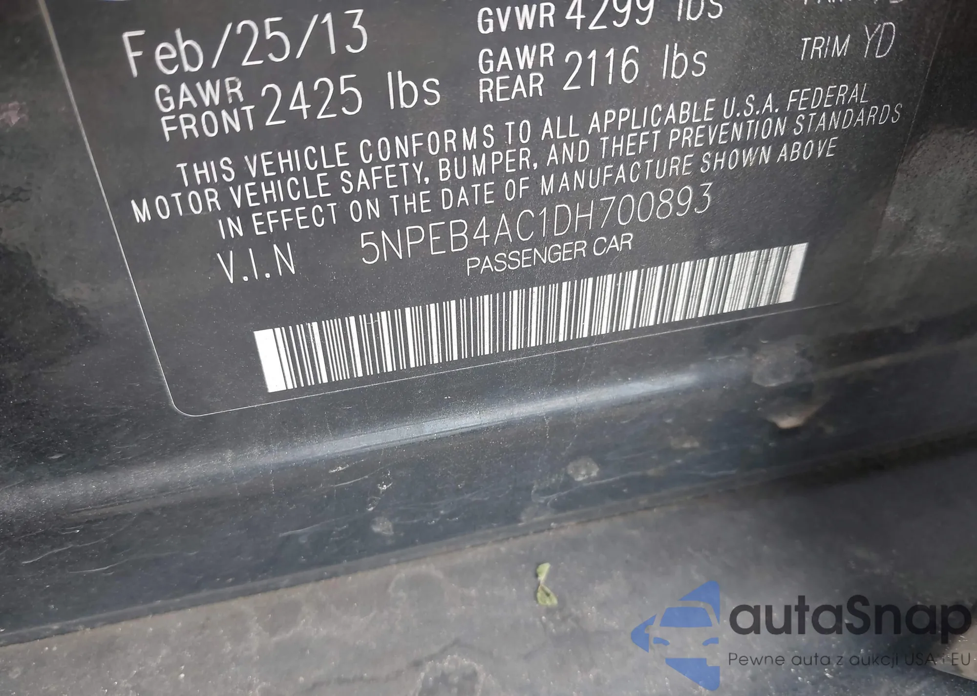 • VIN 5NPEB4AC1DH700893