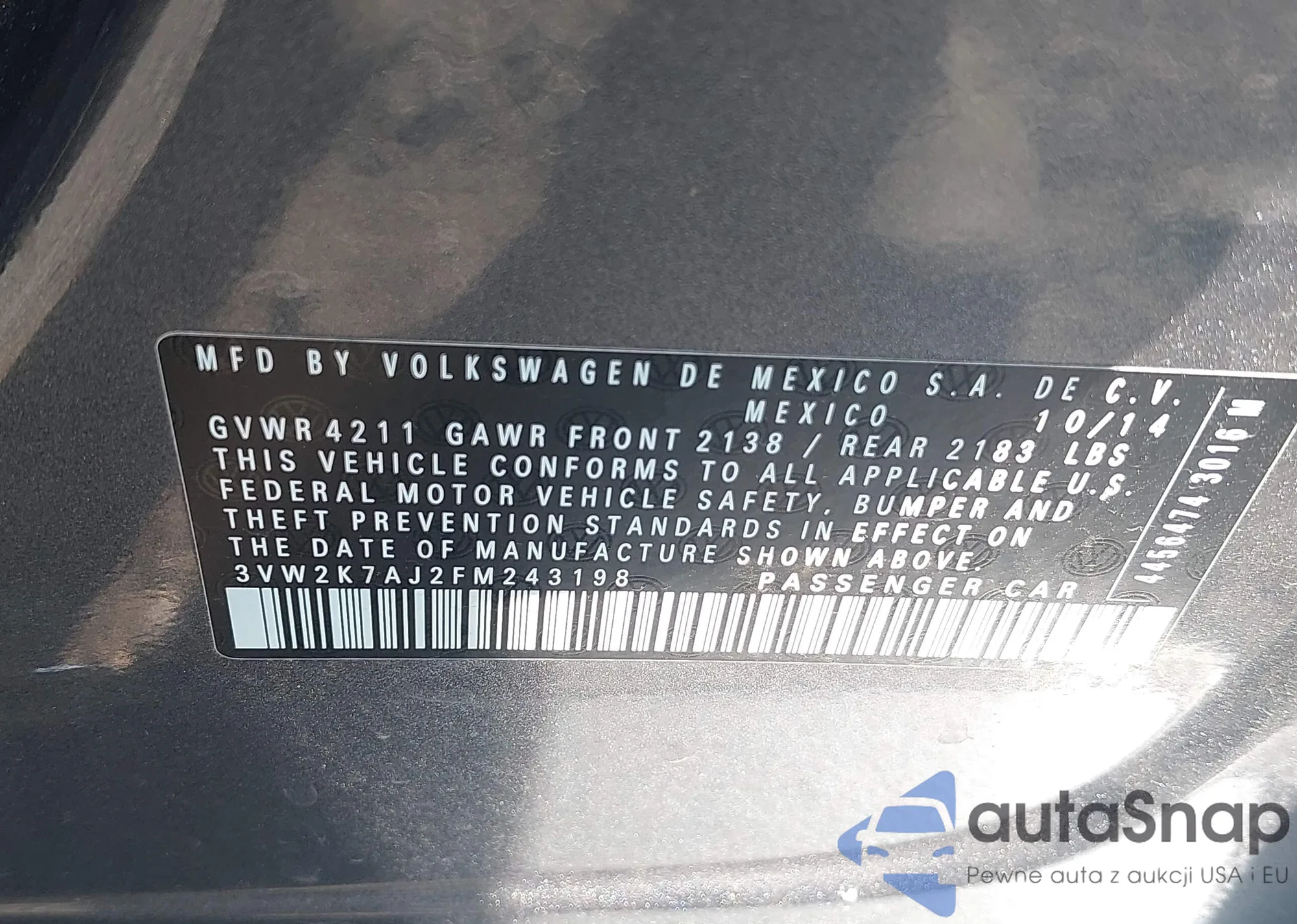 • VIN 3N1AB6AP5BL639125