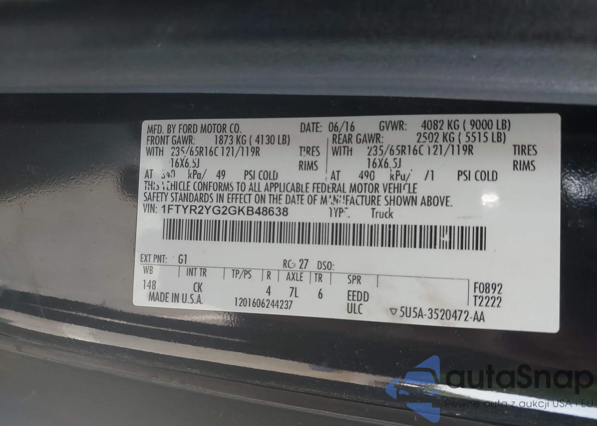 LOT: 42868436 VIN: 1FTYR2YG2GKB48638