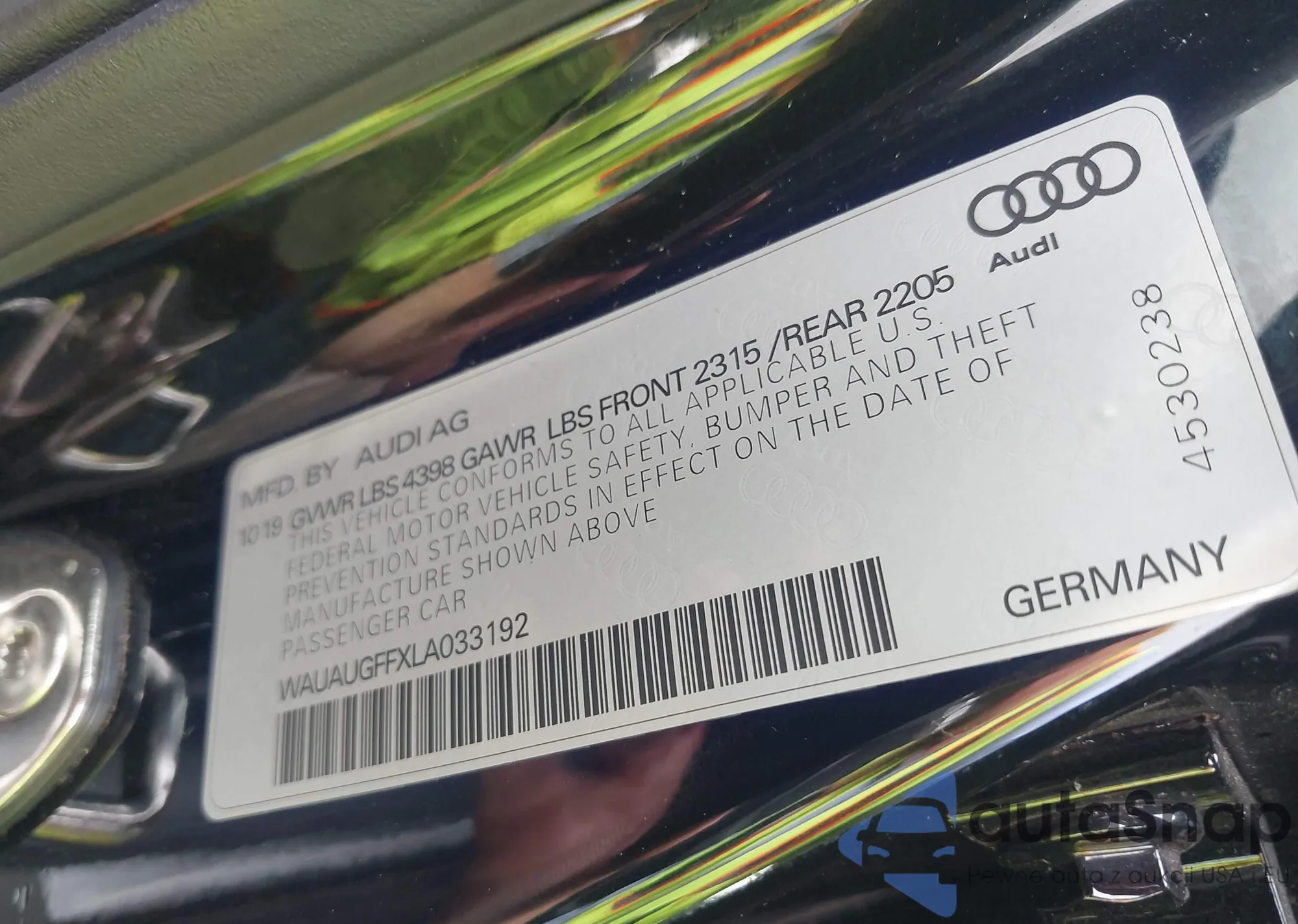 • VIN WAUAUGFFXLA033192