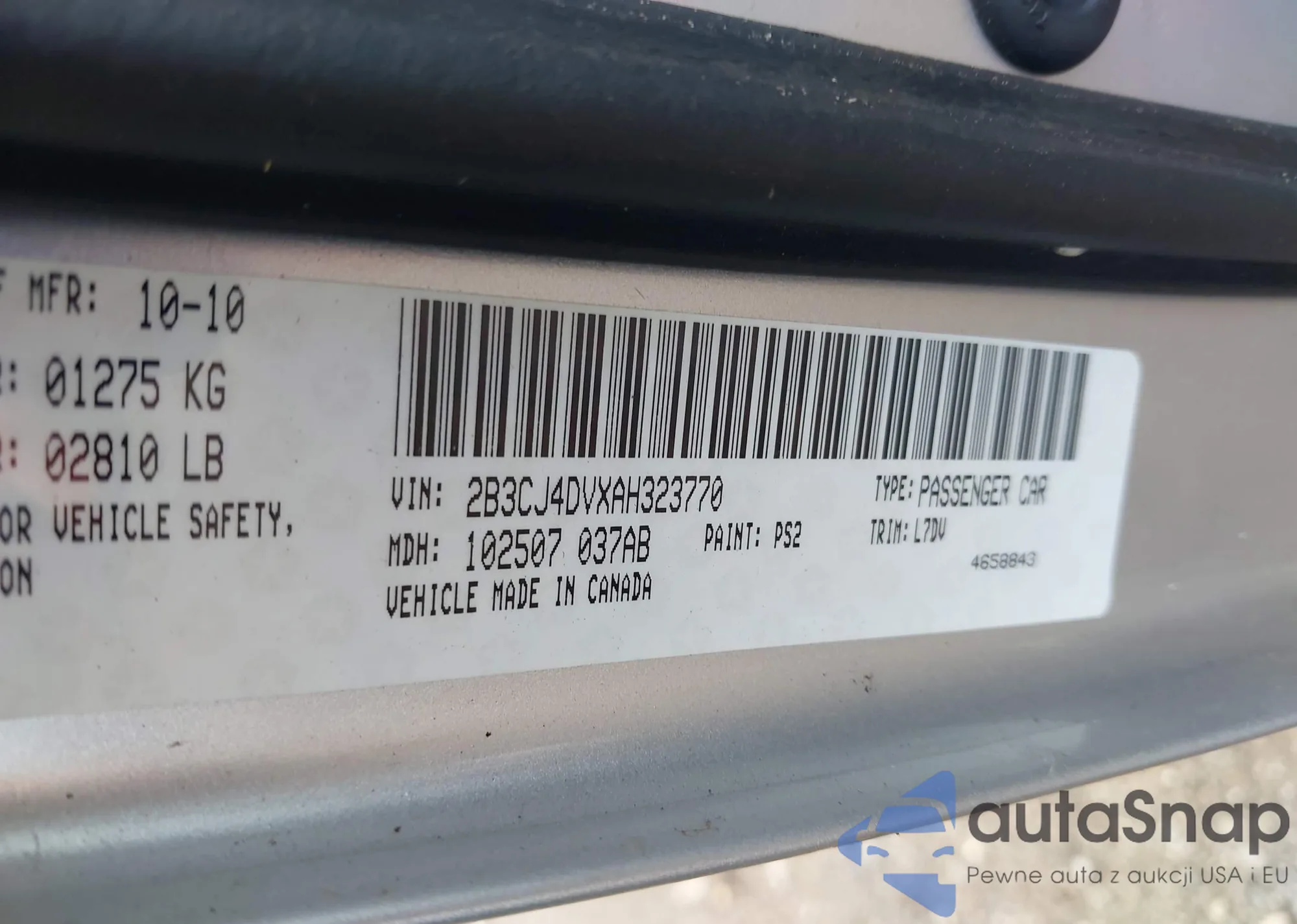 LOT: 43165697 VIN: 2B3CJ4DVXAH323770