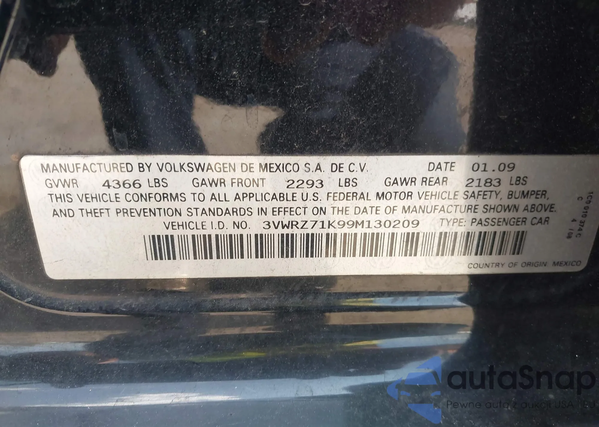 • VIN 3VWRZ71K99M130209