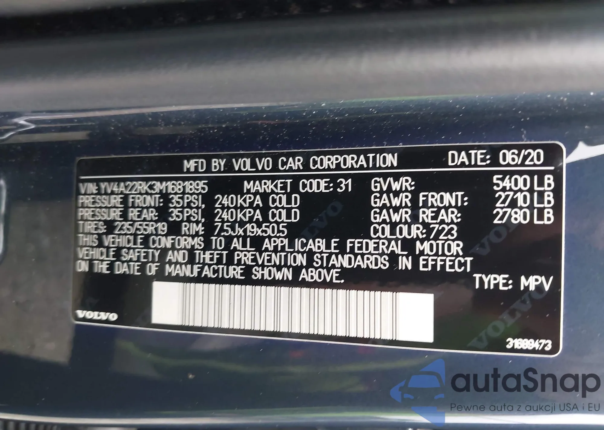 • VIN YV4A22RK3M1681895