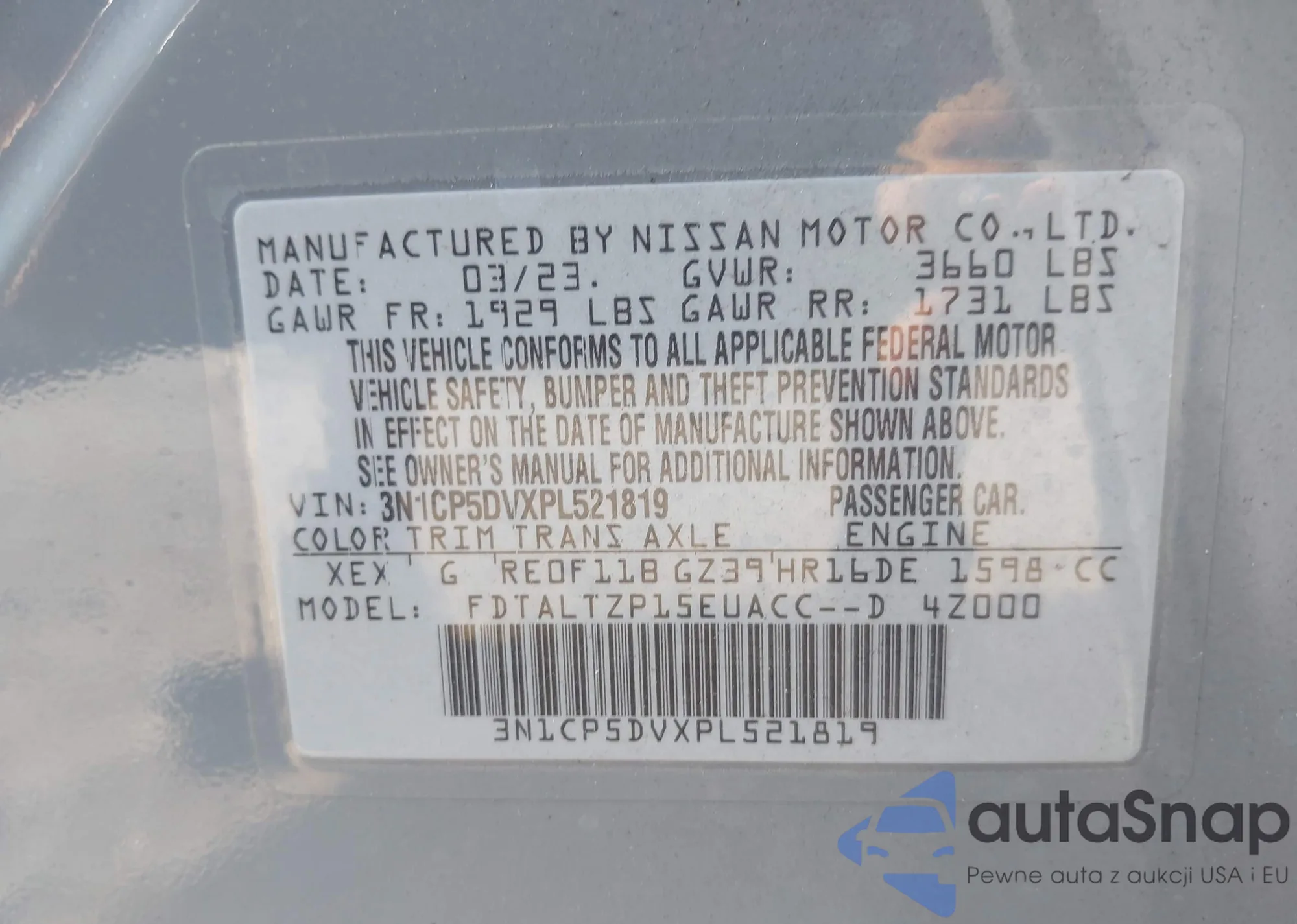 • VIN 3N1CP5DVXPL521819