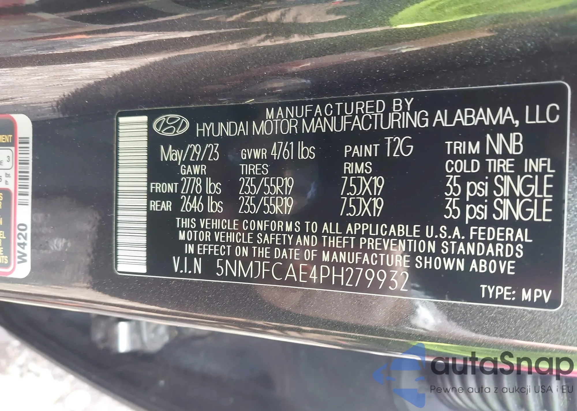 • VIN 5NMJFCAE4PH279932