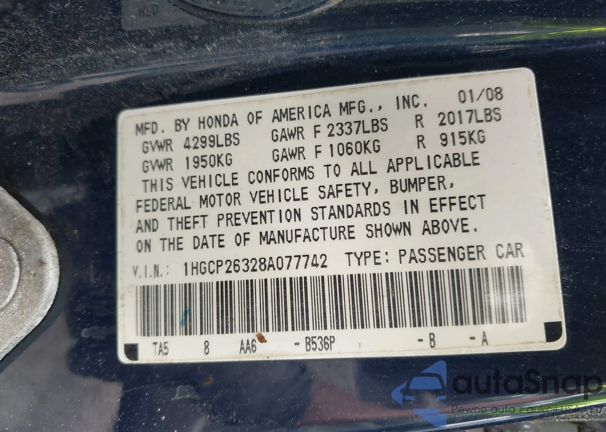 • VIN 5FNRL38667B436825