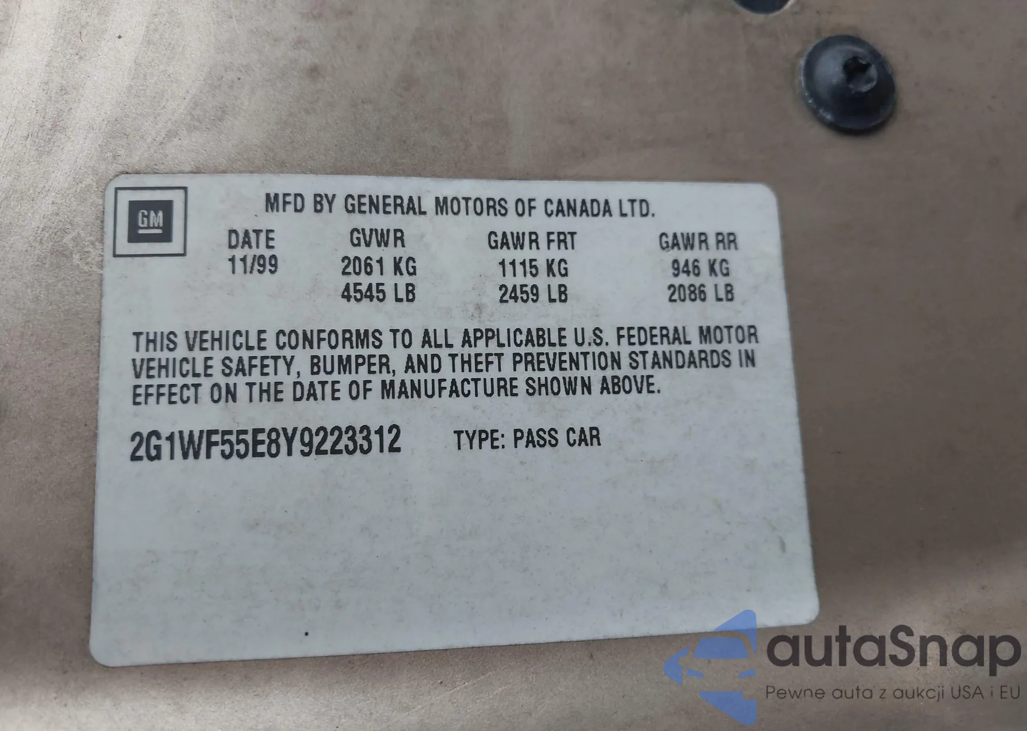 • VIN 2G1WF55E8Y9223312
