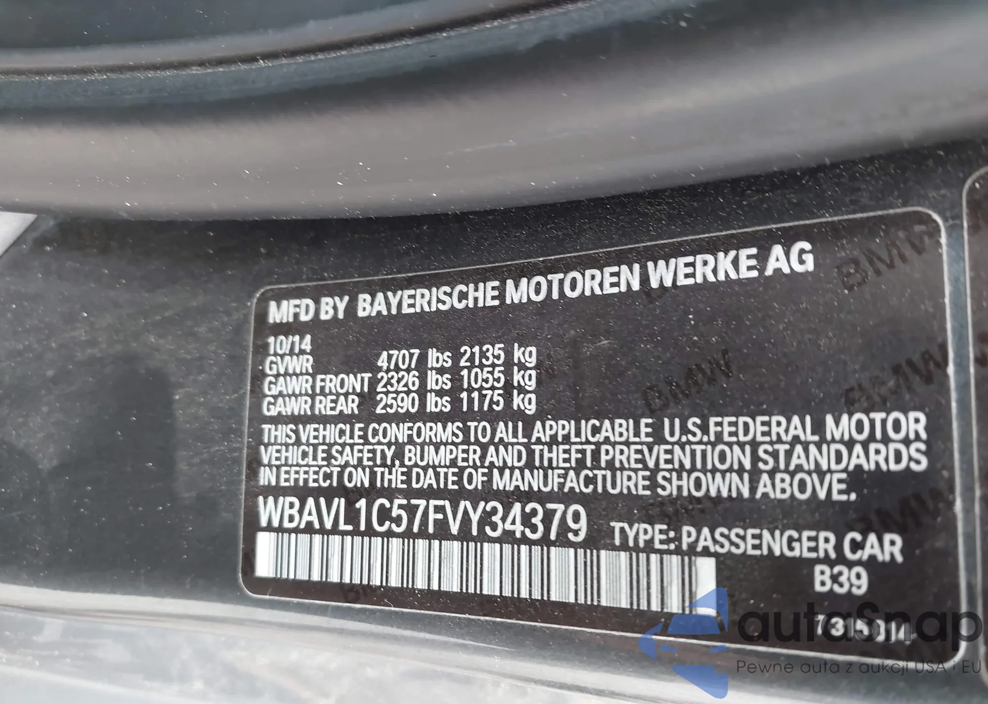 LOT: 43048745 VIN: WBAVL1C57FVY34379