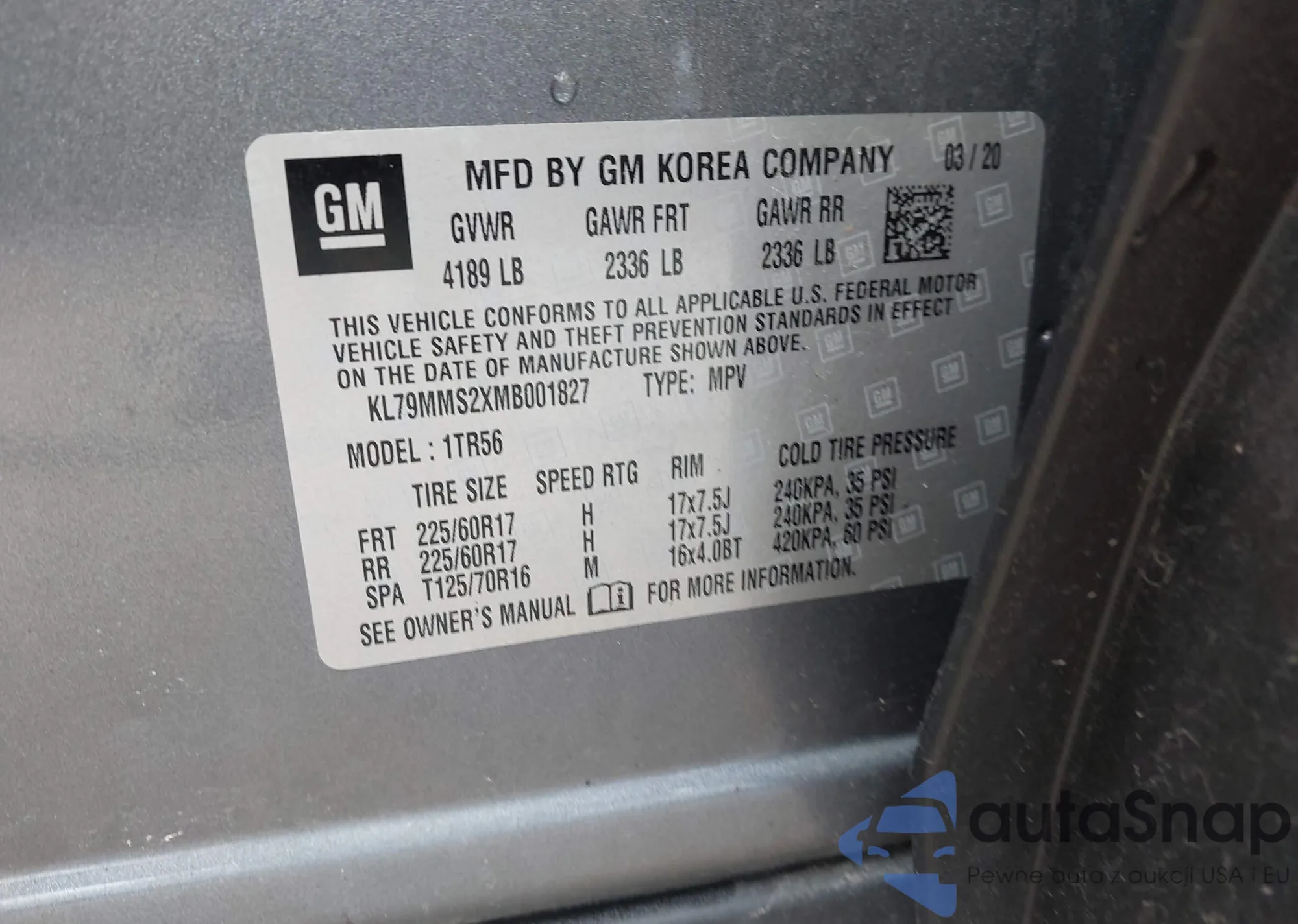 LOT: 42904459 VIN: 3GNAXKEV4LL322218