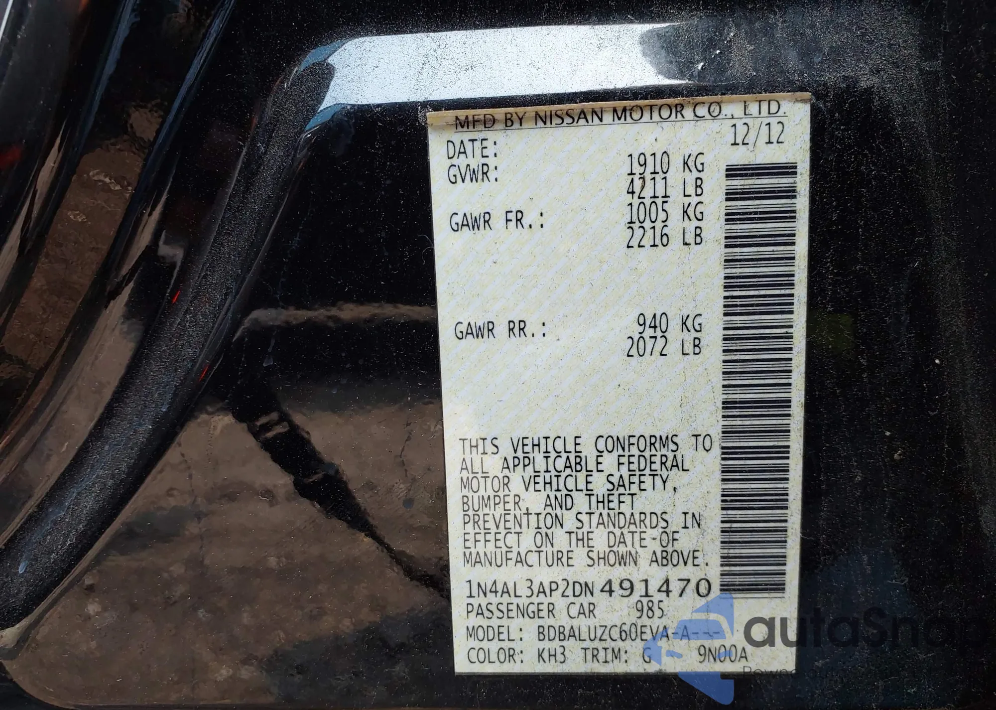 • VIN 1N4AL3AP2DN491470