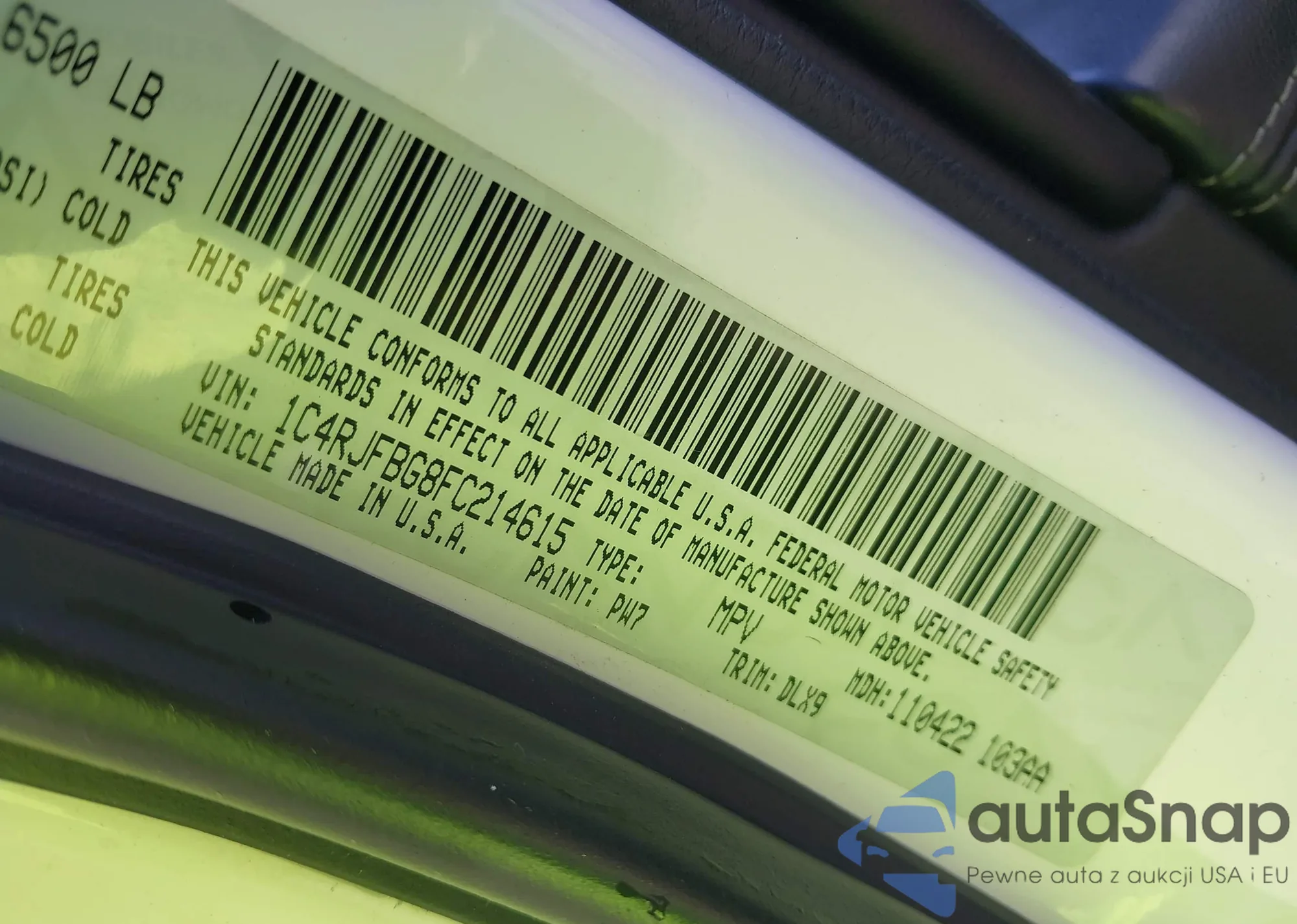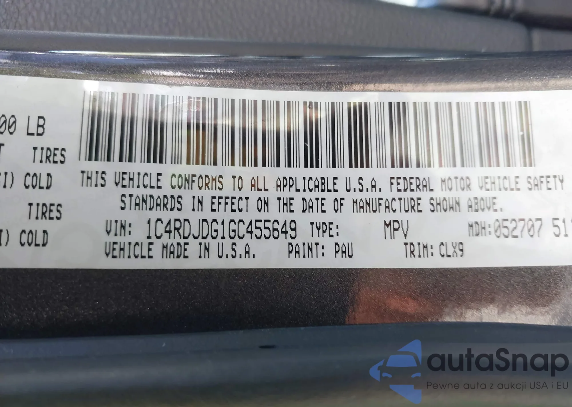 • VIN 1C4RDJDG1GC455649