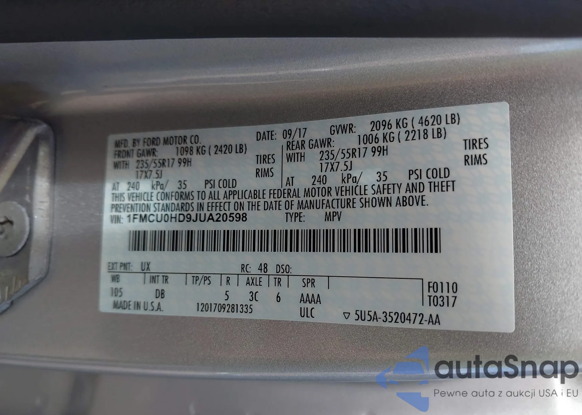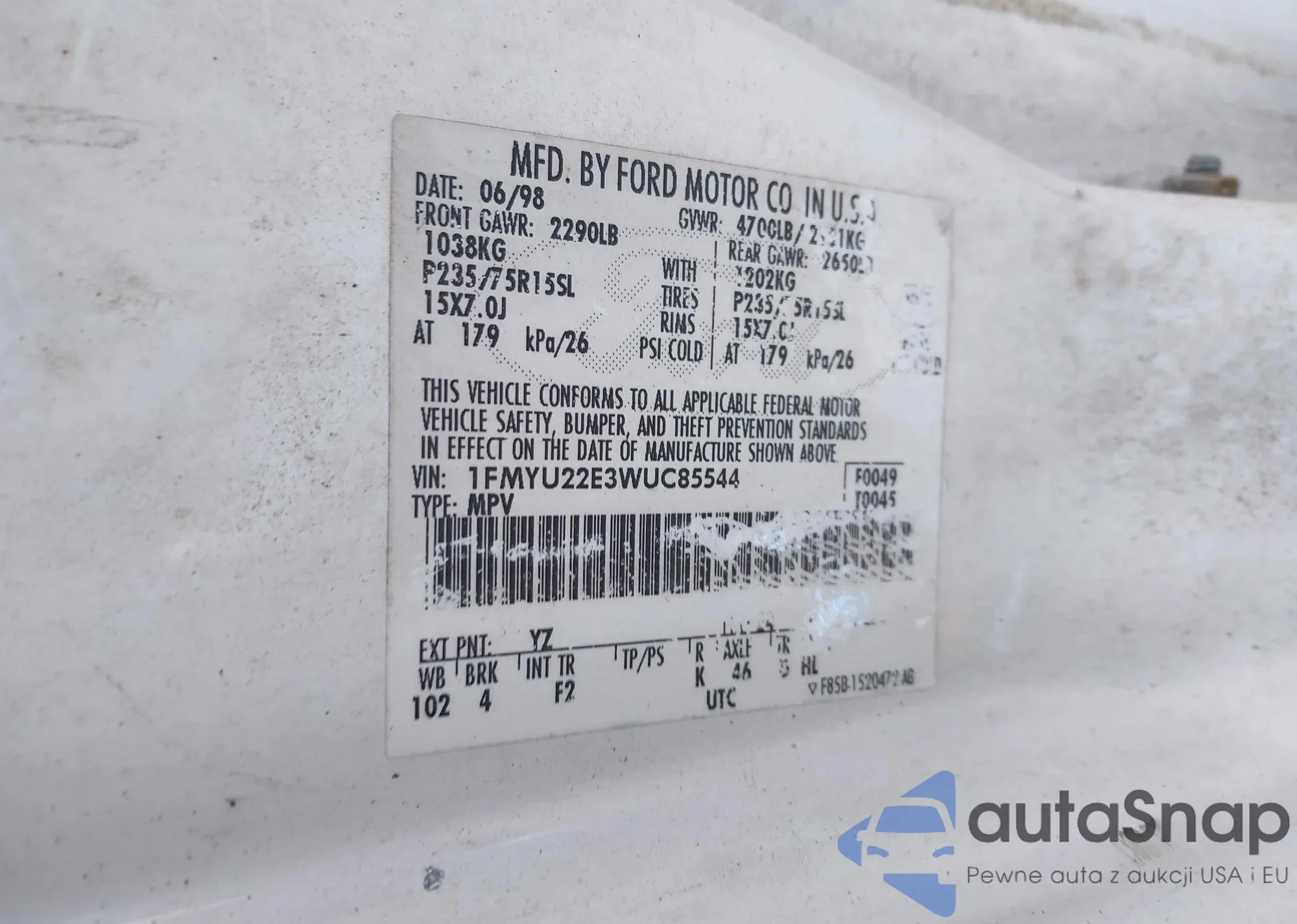 LOT: 43202236 VIN: 1FMYU22E3WUC85544