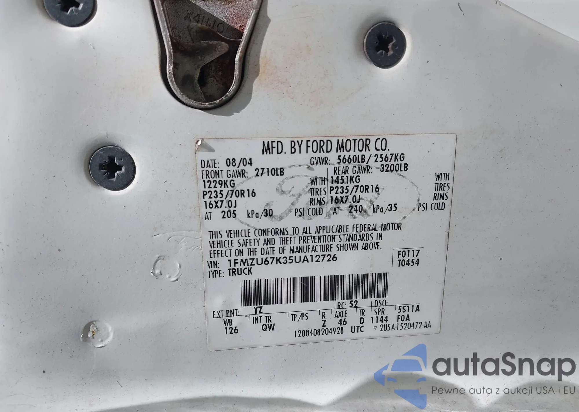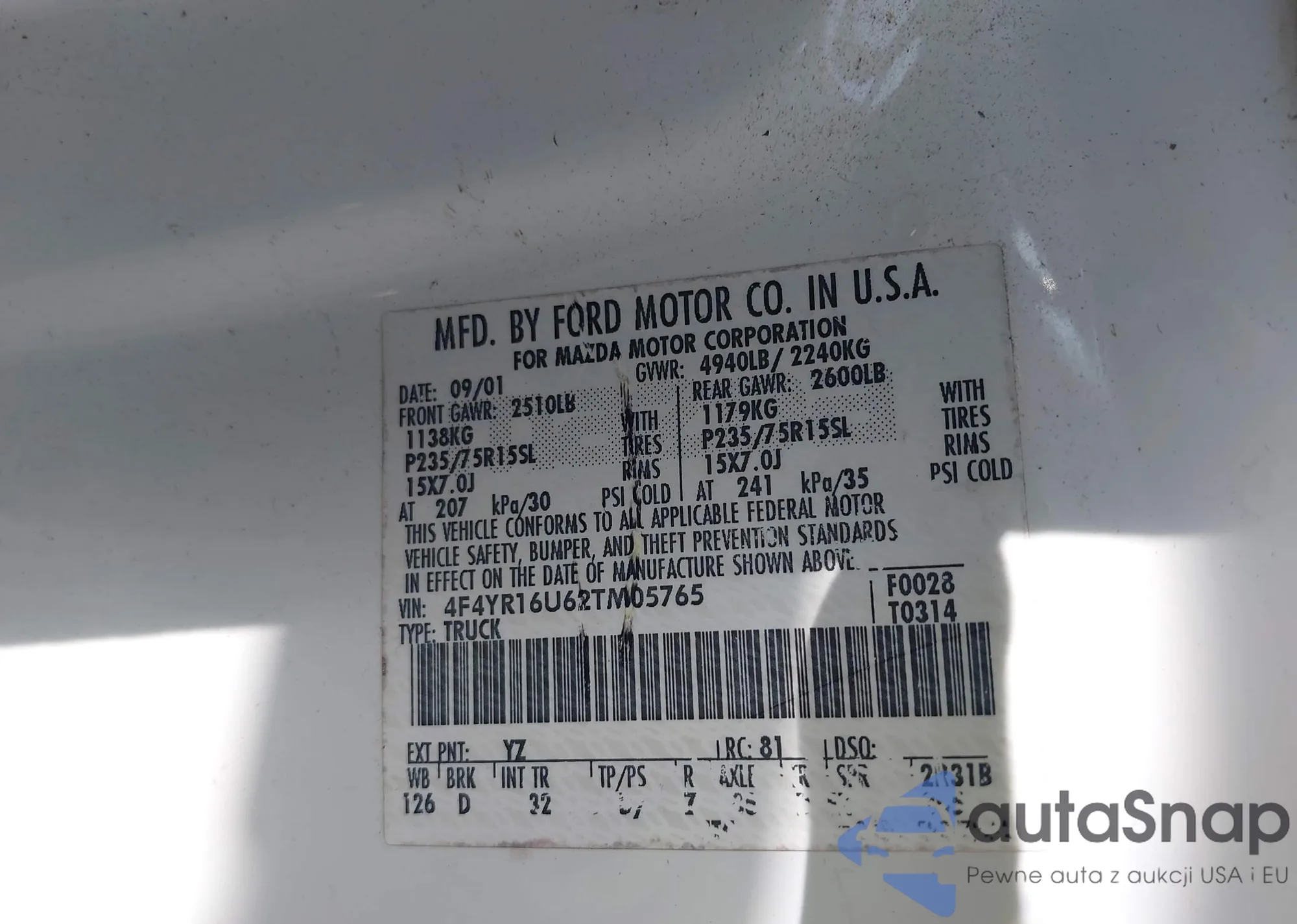 LOT: 43132116 VIN: 4F4YR16U62TM05765