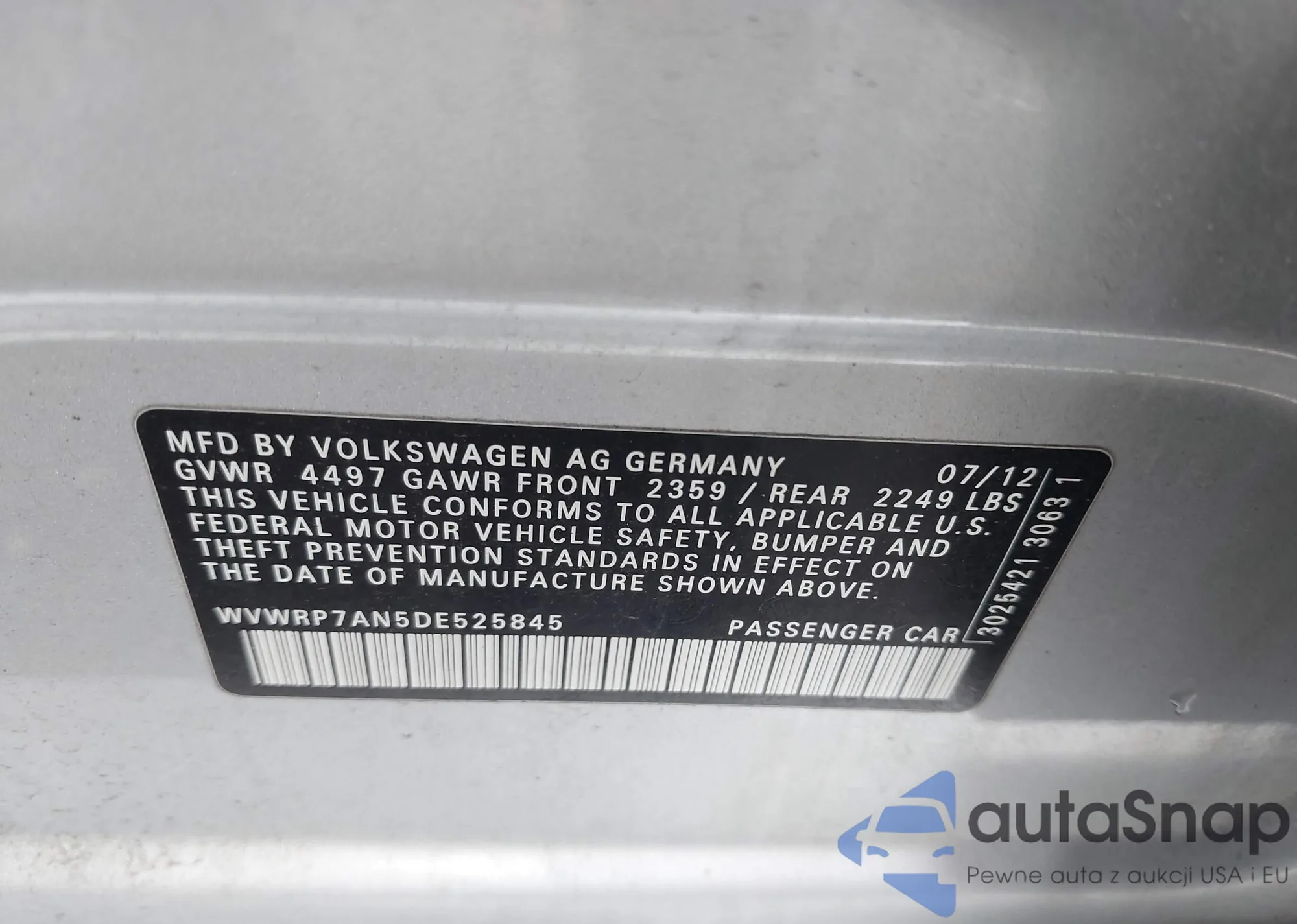 • VIN WVWRP7AN5DE525845