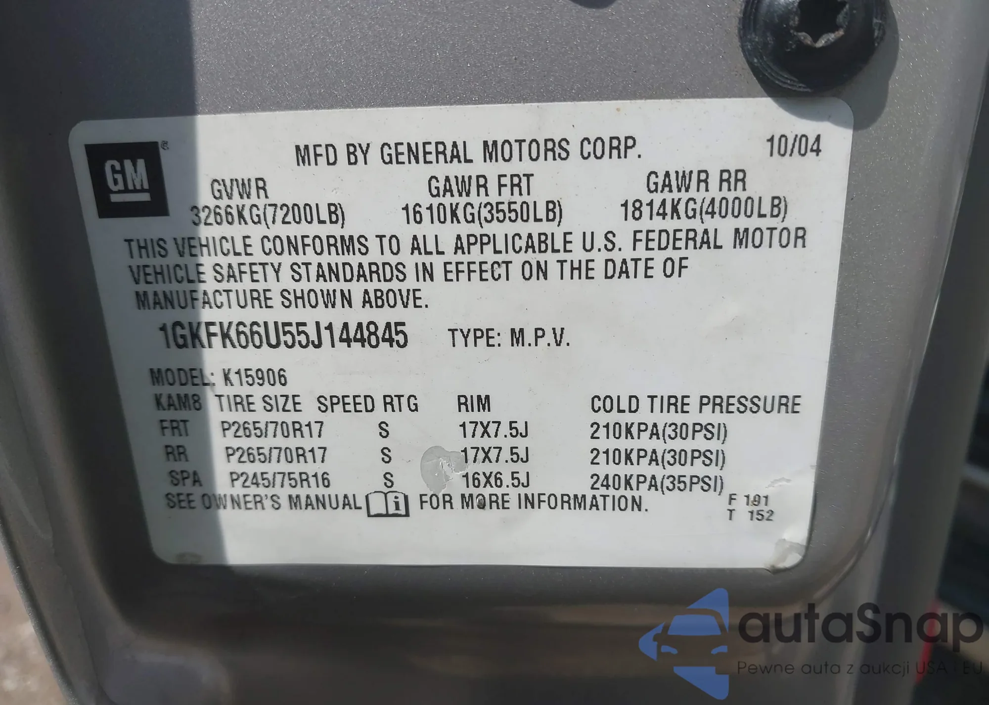 LOT: 43153209 VIN: 1GKFK66U55J144845