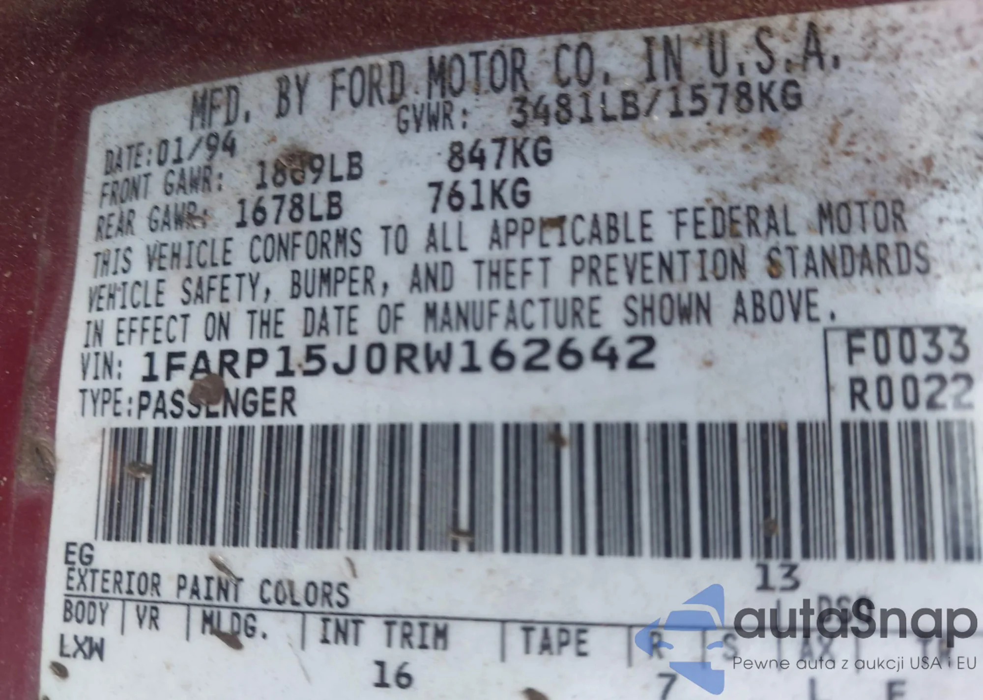 • VIN 1FARP15J0RW162642