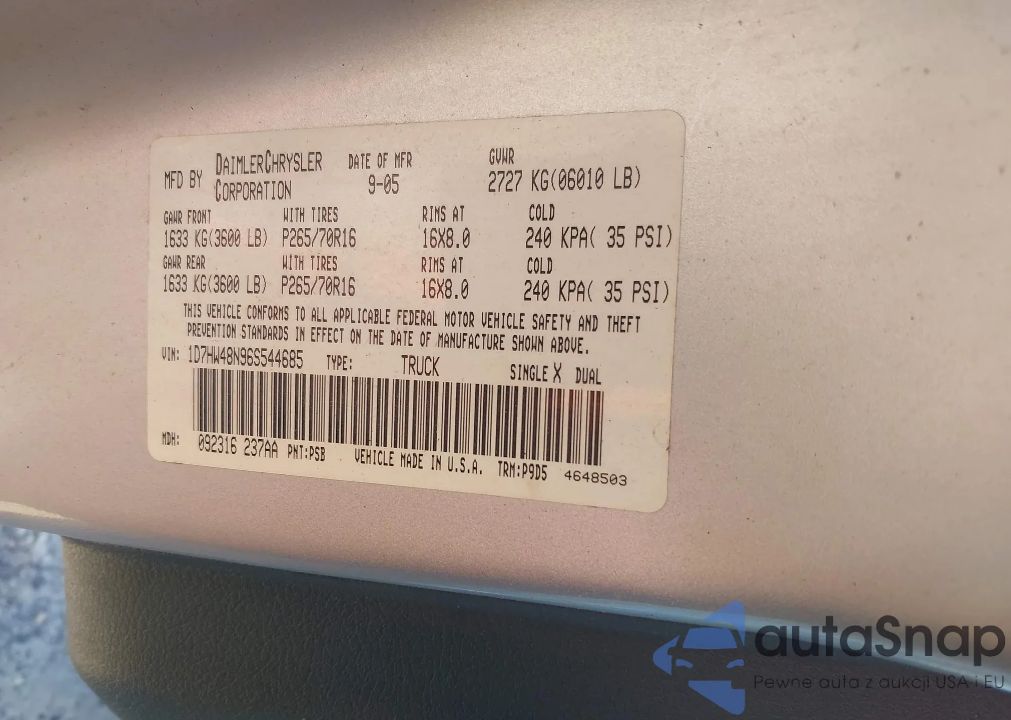 • VIN 1D7HW48N96S544685
