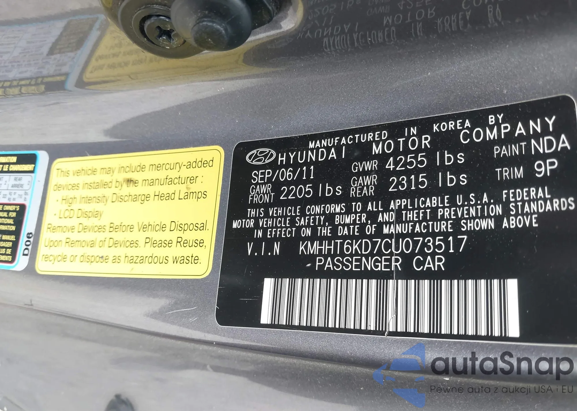 LOT: 42948932 VIN: 4T1BF1FK2CU021124