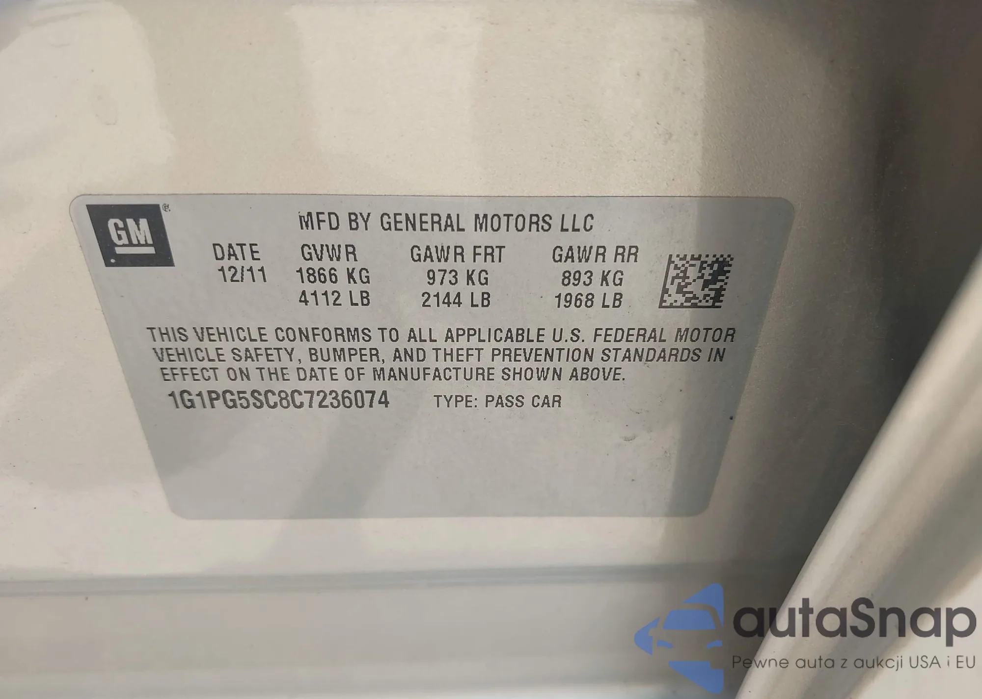 • VIN 1G1PG5SC8C7236074
