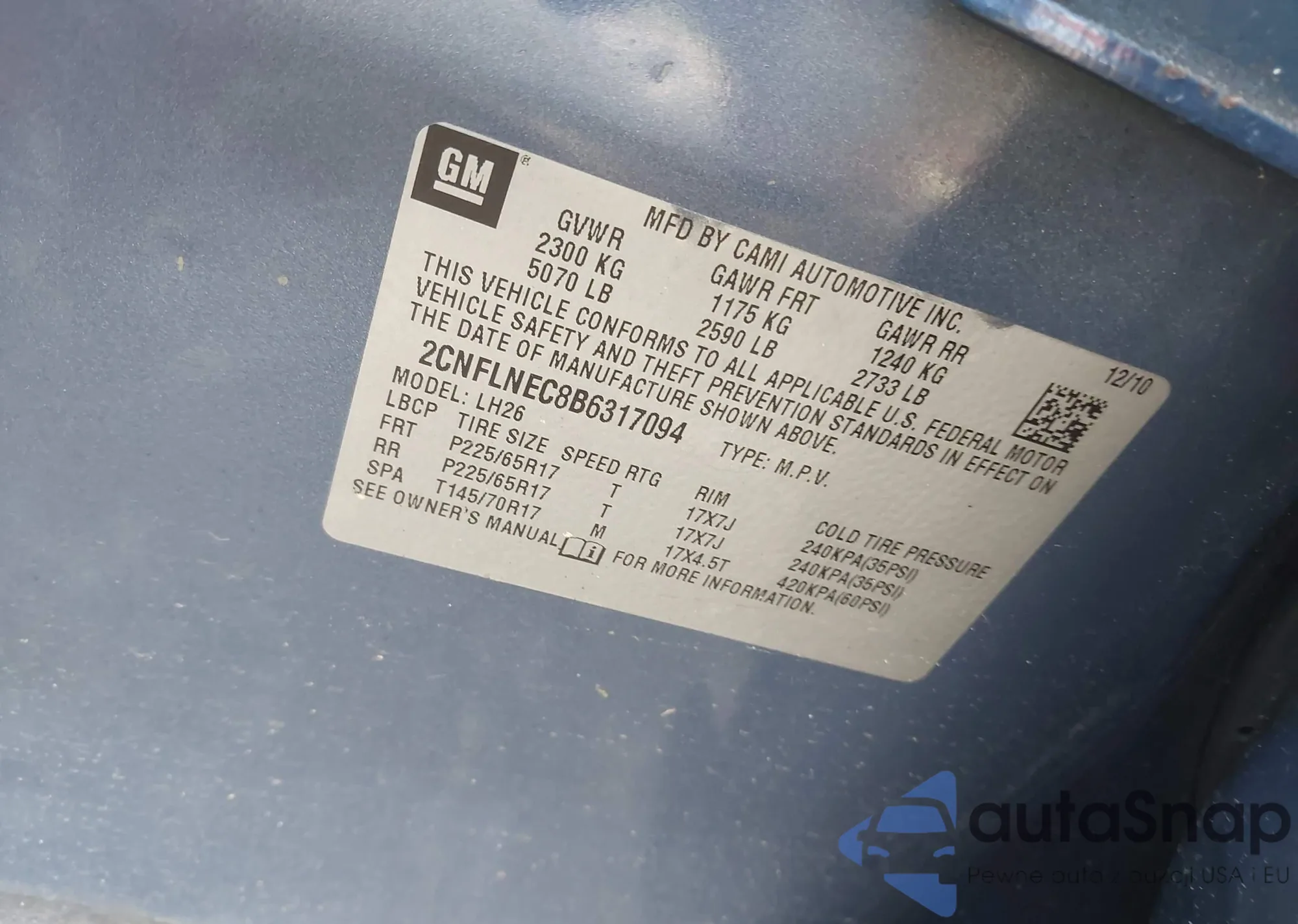 • VIN 2CNFLNEC8B6317094