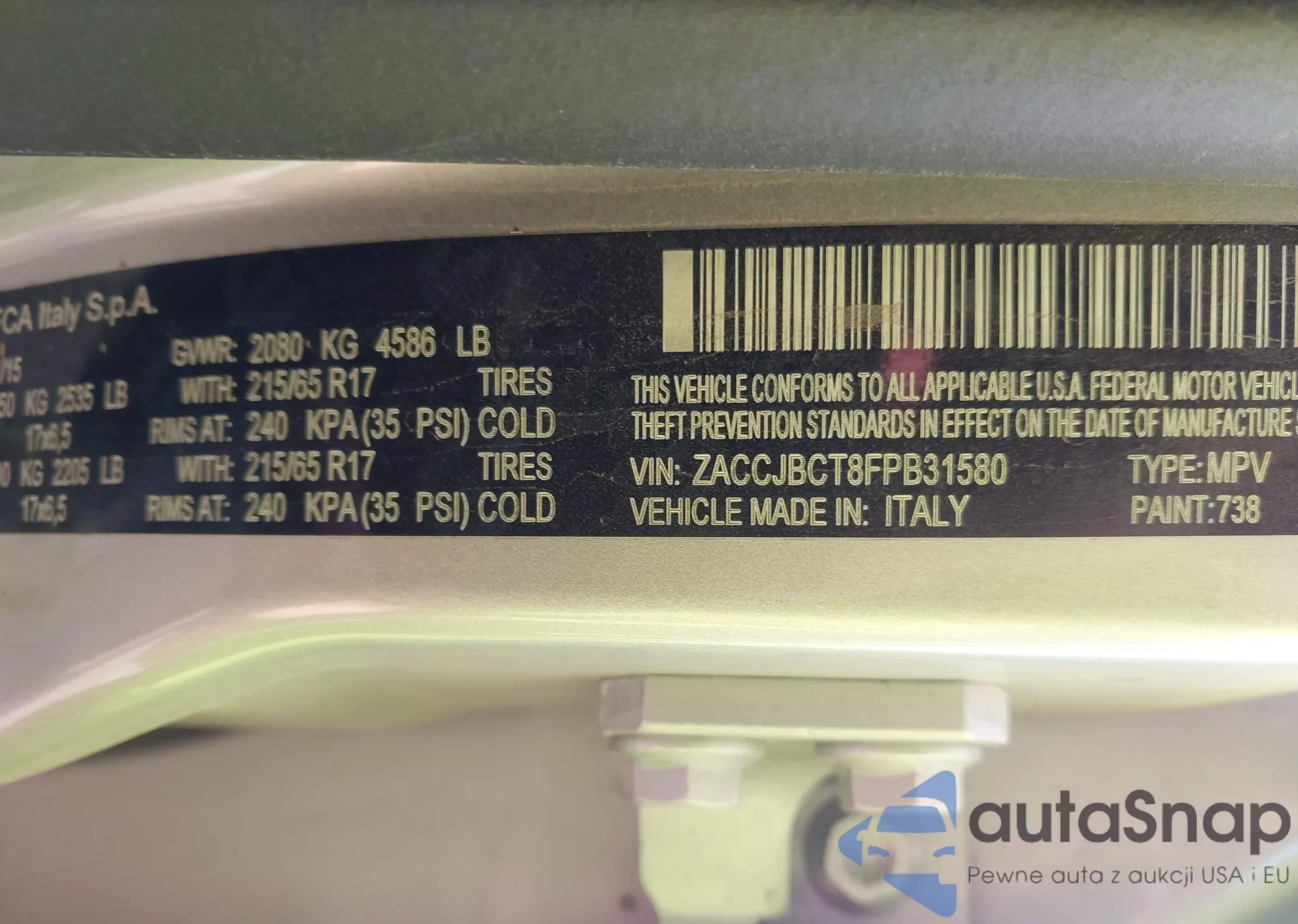 • VIN ZACCJBCT8FPB31580