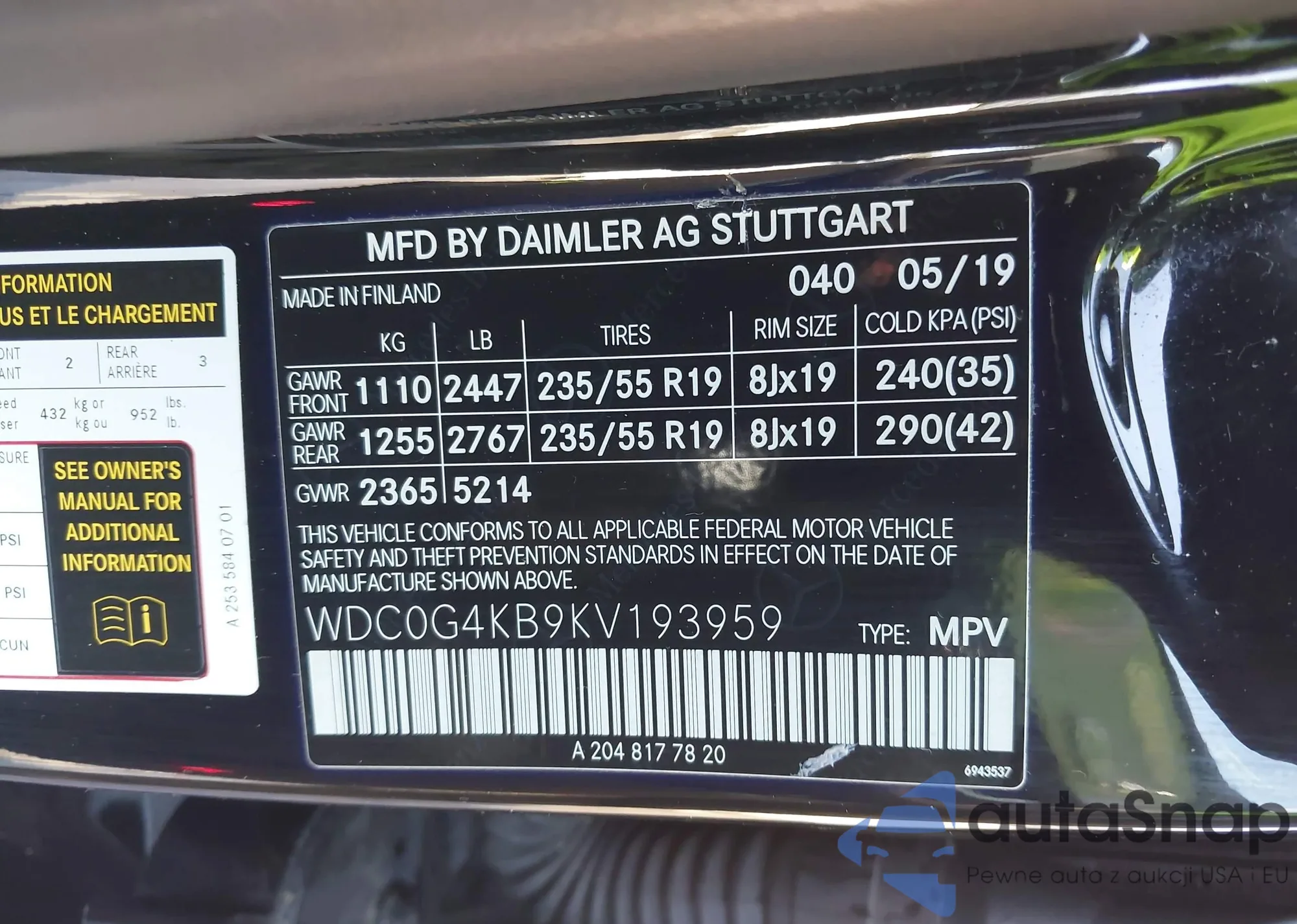 • VIN WDC0G4KB9KV193959