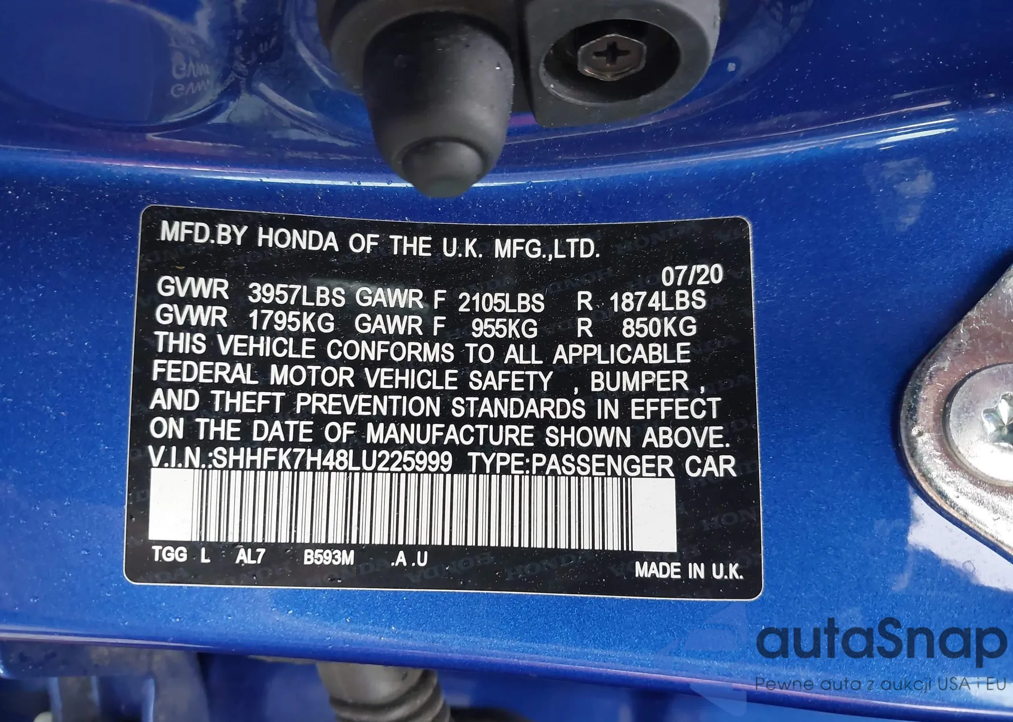 • VIN SHHFK7H48LU225999